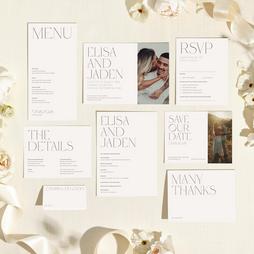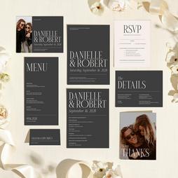 Live the suite life, AKA matching everything. Typography wedding invitation suites are a great way to express your style — create your own with everything from custom save the dates and RSVP cards to menus and programs.