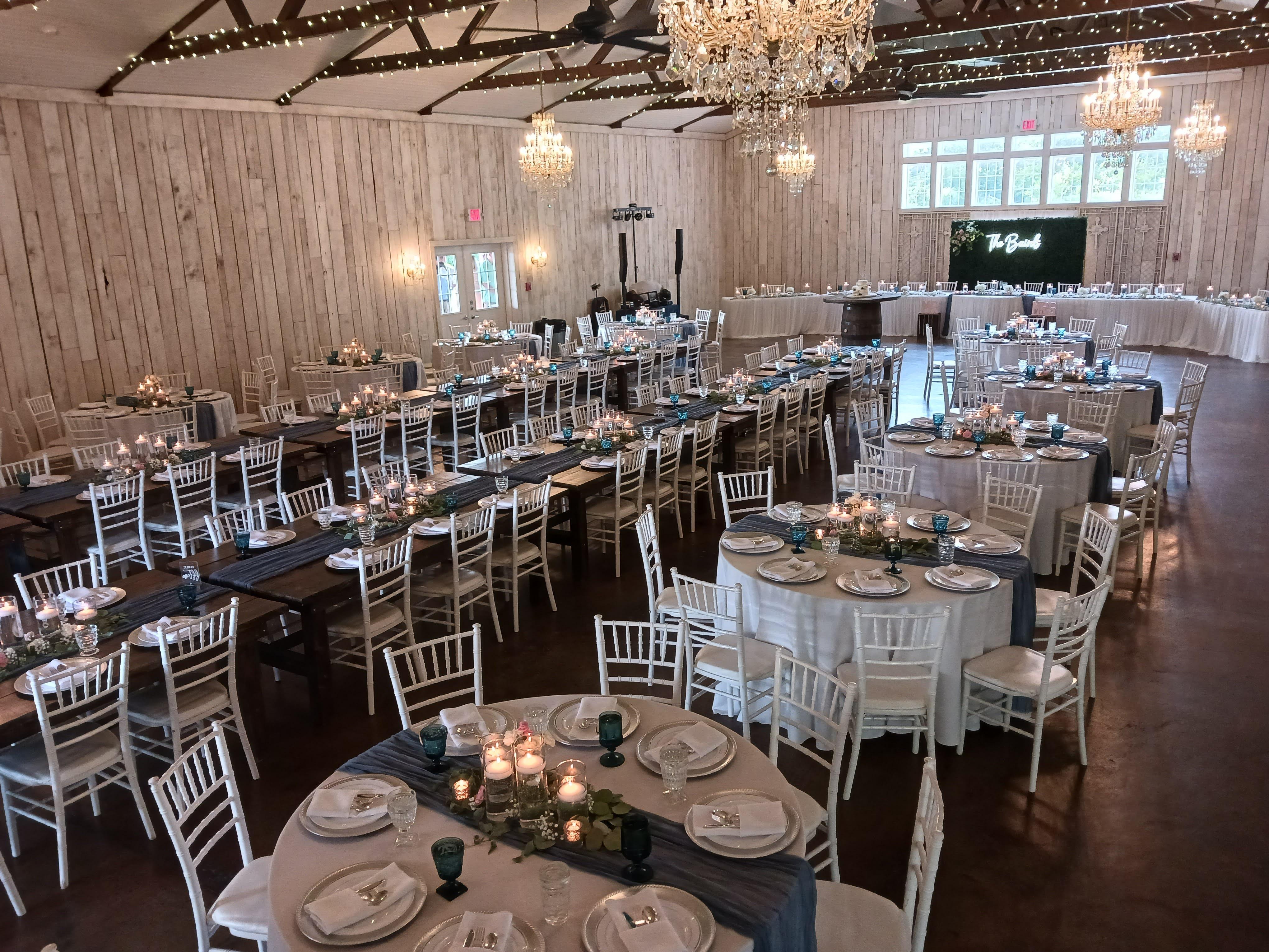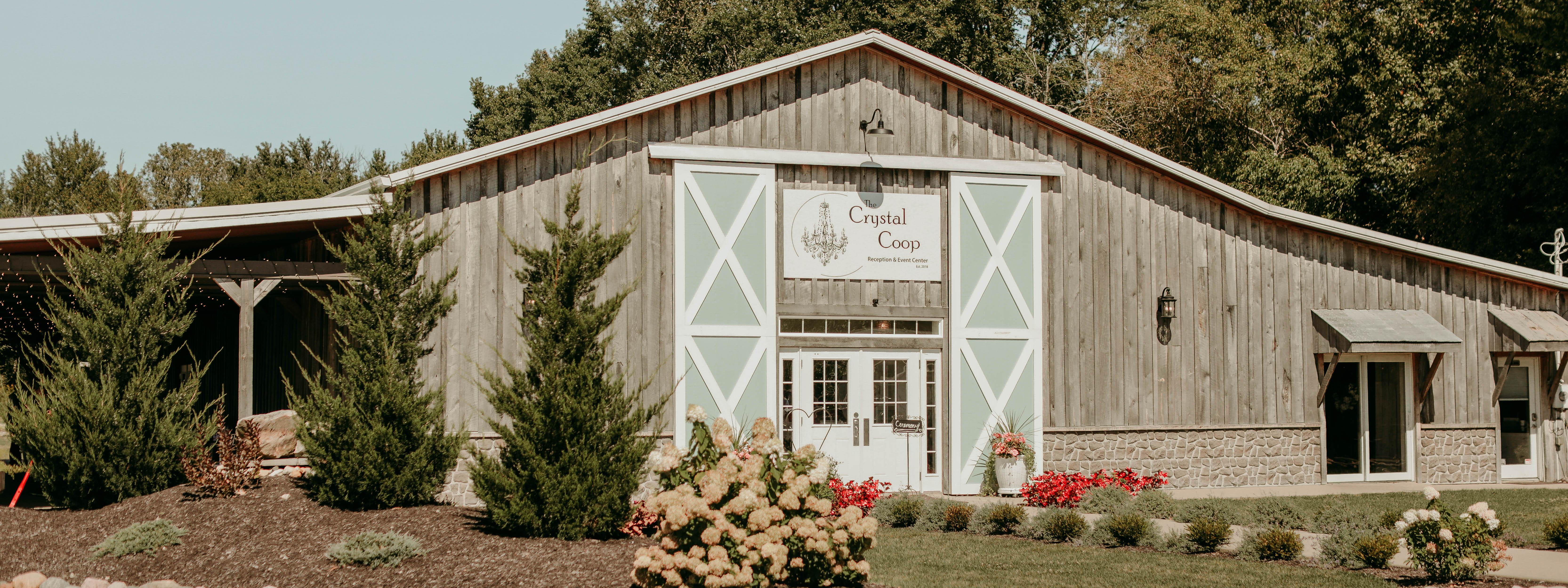 The Crystal Coop Reception & Event Center is a wedding venue located in Anderson, Indiana. The venue is conveniently located close to I-69 and only 35 minutes from Indianapolis. A rustic, yet elegant barn-inspired banquet hall set in the country with beautiful indoor and outdoor settings. Available year-round in a temperature-controlled environment featuring beautiful white-washed walls, gabled ceilings and 6 crystal chandeliers. Located on a serene 5.5 acres, this is the perfect setting for indoor and outdoor ceremonies and receptions. Couples may entertain up to 225 of their guests for ceremonies, receptions, rehearsal dinners or engagement parties. The facility features a vendors kitchen, a full bar area, glass enclosed atrium and beautiful spacious Bridal Suites.