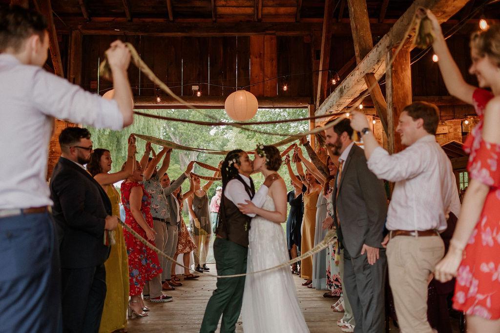 At Common Ground Center, you’ll find everything you need for the wedding day you’ve imagined – beautiful rustic facilities, breathtaking mountain scenery, and the freedom to bring your ideas to life. This is a place where your family and friends can gather, relax, and celebrate for a whole weekend while enjoying nature, exclusive site use, and each other. Our 700-acre camp is available from mid-May to mid-October and can accommodate up to 200 ceremony guests. Common Ground is located just 30 minutes from Burlington, Vermont, allowing for easy travel for family and friends coming from far away. This venue is the ideal place for DIY-minded couples who have that picturesque, green, rustic Vermont wedding in mind. With a variety of venues for small and medium-sized celebrations, each space offers plenty of flexibility for you to arrange and decorate however you’d like.