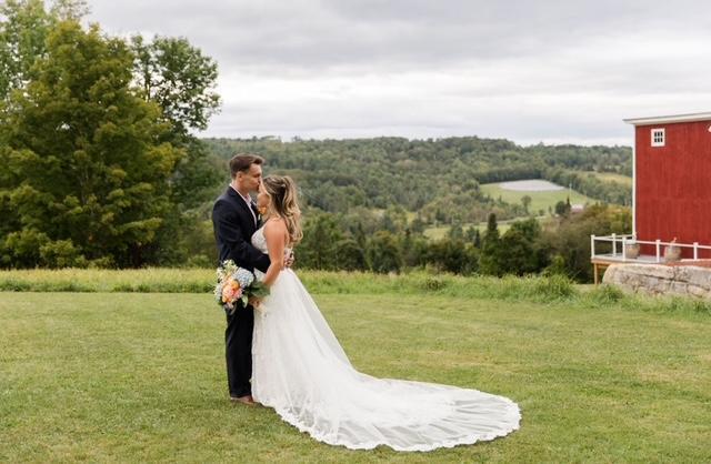 It was so hard to begin to write this review because we have a book of amazing things to say about Lareau Farm. Being from Connecticut, my Husband and I accidentally found Lareau Farm Inn and fell in love with both the location and the staff. From the second we met Helen for our tour of the venue, she remained extremely helpful and easy to contact. What immediately grabbed our attention about this venue is that you can stay at the Inn for the weekend with your family and close friends. This was such a special weekend for us, we were surrounded by our bridal party and our direct families from Thursday to Monday. The Inn has beautiful land to walk around, a creek to swim in, and my younger sisters loved walking around to see the flowers. Even better, the breakfast at the Inn was delicious every single day (we say it is the best french toast we have ever had). Helen and the team at the Farm were accommodating with all of the ideas that we had. On Thursday we held an outdoor yoga class on the grounds of the Inn- it was peaceful and everyone had so much fun. We decided to have rehearsal dinner at the Historic Red Barn and it was beautiful. Helen has so much attention to detail, tables and decorations were spot on to what we had imagined. We opted for the American Flatbread at rehearsal dinner and our guests say it was the best flatbread they have ever had ( we even ordered extra later that night!). The best part about our wedding morning was that we had no worries because we knew that Helen and the team had everything under control. I was so calm, cool, and collected, on the wedding day morning and it was all due to everyone making the process so easy. As a bride who had every little detail planned out, Helen was able to place every decoration perfectly just by following little sticky notes I had left her. Helen was great at contacting our vendors and keeping everything going smoothly. We decided to have a food buffet for dinner, and we still have our guests talking about how good the dinner was, “ the best wedding food ever”, as they say. I think we went up for thirds at one point! One of our favorite parts of the night was sitting around the fire after our Reception, having s'mores , and watching the stars. Another plus of the venue location is that there are no street lights around, so star watching is spectacular. There was not one thing throughout our entire wedding weekend that went wrong, and nothing we would change. The venue is so beautiful, it makes for perfect pictures no matter where you are. If you are looking for a venue that is laid back, naturally beautiful, has delicious and fresh food, and kind staff, then LF is your place. A month after our wedding the farm surprised us with a painting of my bouquet as a gift- just another instance where they are so thoughtful! There is nothing better than enjoying coffee on the porch and the company of everyone you love on the day you get married. I wish we could give this venue more than 5 stars because they deserve it. A huge thank you to Helen, again, and the team at Lareau Farm, Colby & Taylor Nolan