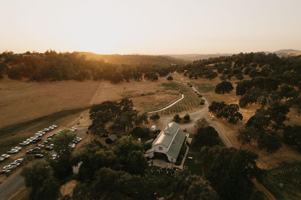 A Refined, luxurious estate for the wedding of your dreams. River Highlands Ranch is tucked away just 15 miles from Grass Valley, CA. Our family-owned estate spans 400+ acres of rolling hills, lush vineyards, and golden fields— delivering panoramic views and serene sunset backdrops that elevate every moment of your celebration. At the heart of the property stands a beautiful white barn —over 7,500 square feet of elegant, open space perfect for hosting up to 250 guests. Whether you envision an intimate ceremony beneath our enchanting Oak tree or on our ceremony stage framed by the sweeping farmlands of Northern California, every setting here is picture-perfect.