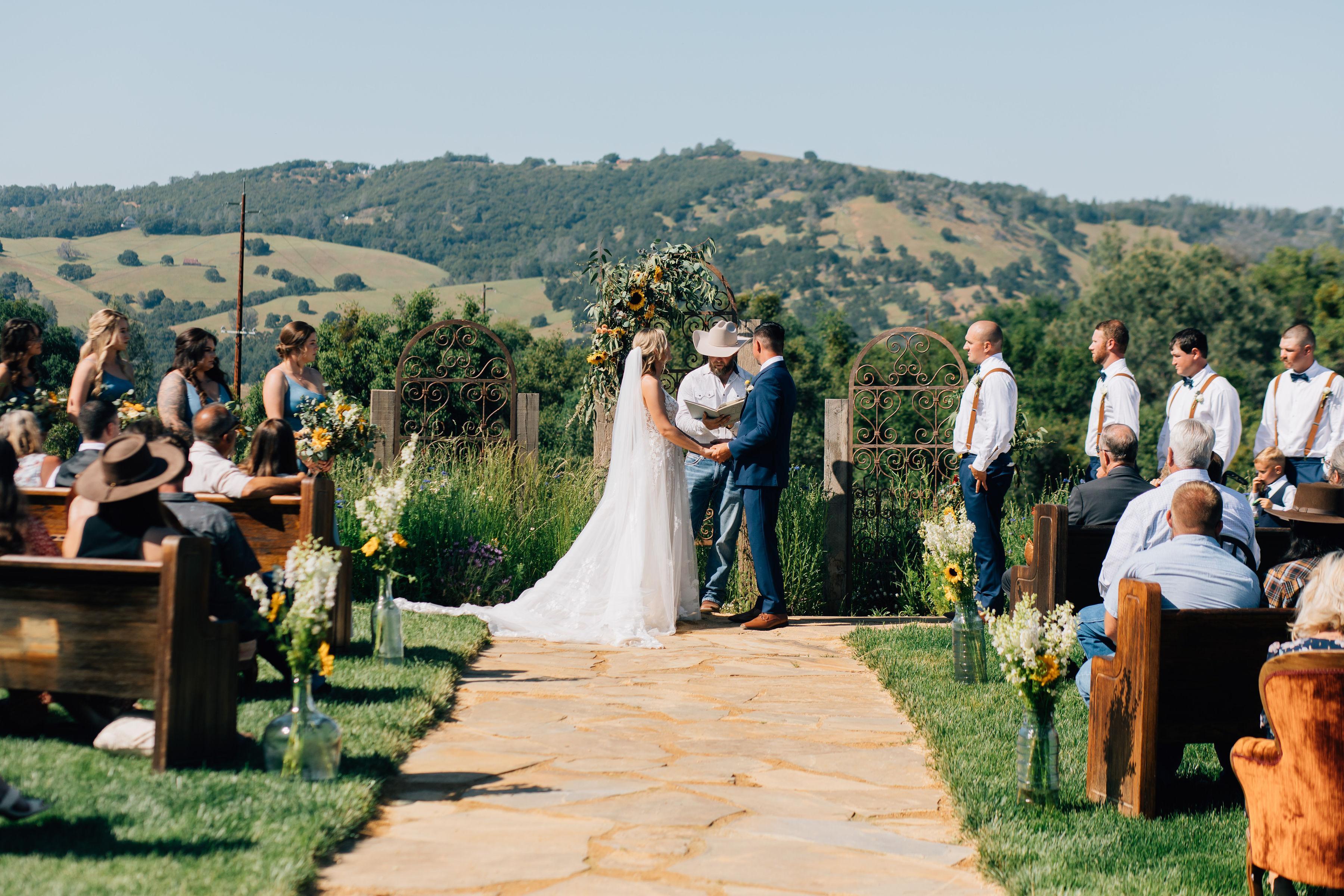 Welcome to Golden Hill Ranch, a beautiful 10 acre property in Northern California with the most stunning views of the surrounding mountains and countryside. Say "I do" surrounded by the serene beauty of a vast, picturesque field. Featuring the largest pool in El Dorado County, the venue offers a variety of settings for guests to enjoy. Capture timeless moments with stunning photo opportunities around the ranch. From fields of wildflowers to majestic oak trees, every corner of the property tells a story. The ranch offers more than just a venue; it provides an immersive experience that connects you to the beauty of nature. A brand new 4 bed, 2.5 bath home on the property is available for overnight accommodations. Please inquire for more details and a tour - we can't wait to meet you.