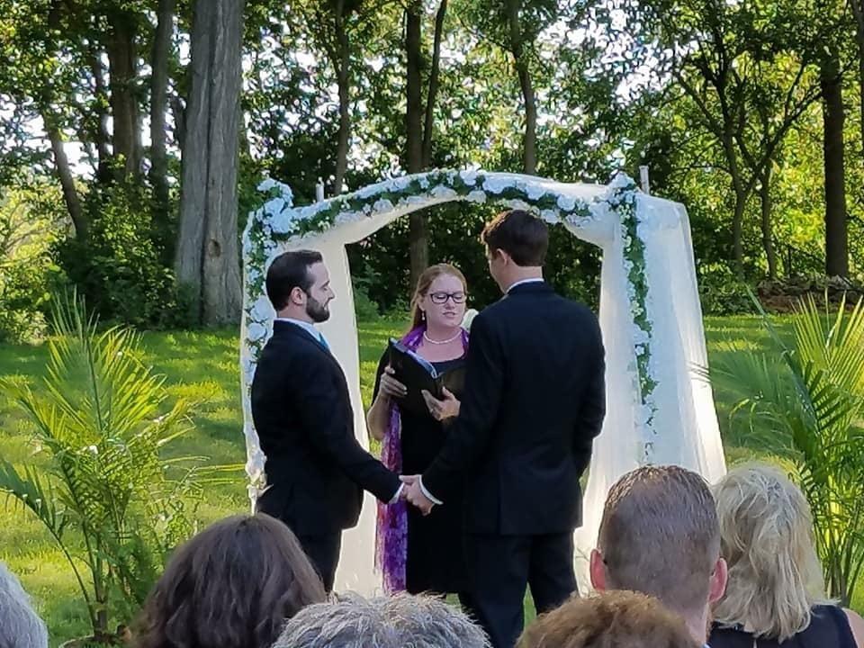 Jennifer was wonderful to work with. She was very easy to contact and quickly answered any and all questions. Rehearsal went by so smooth and made sure to allievate any concerns and nerves- everyone knew what to do, when to do it, and how. The ceremony itself was more than what we could have hoped for. Jennifer kept it upbeat, loving, emotional, and just FUN! We were involved in the writing process so the ceremony was personal and full of meaning but kept a lot of surprises for us. I cannot recommend Jennifer enough!!!