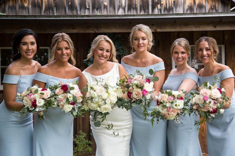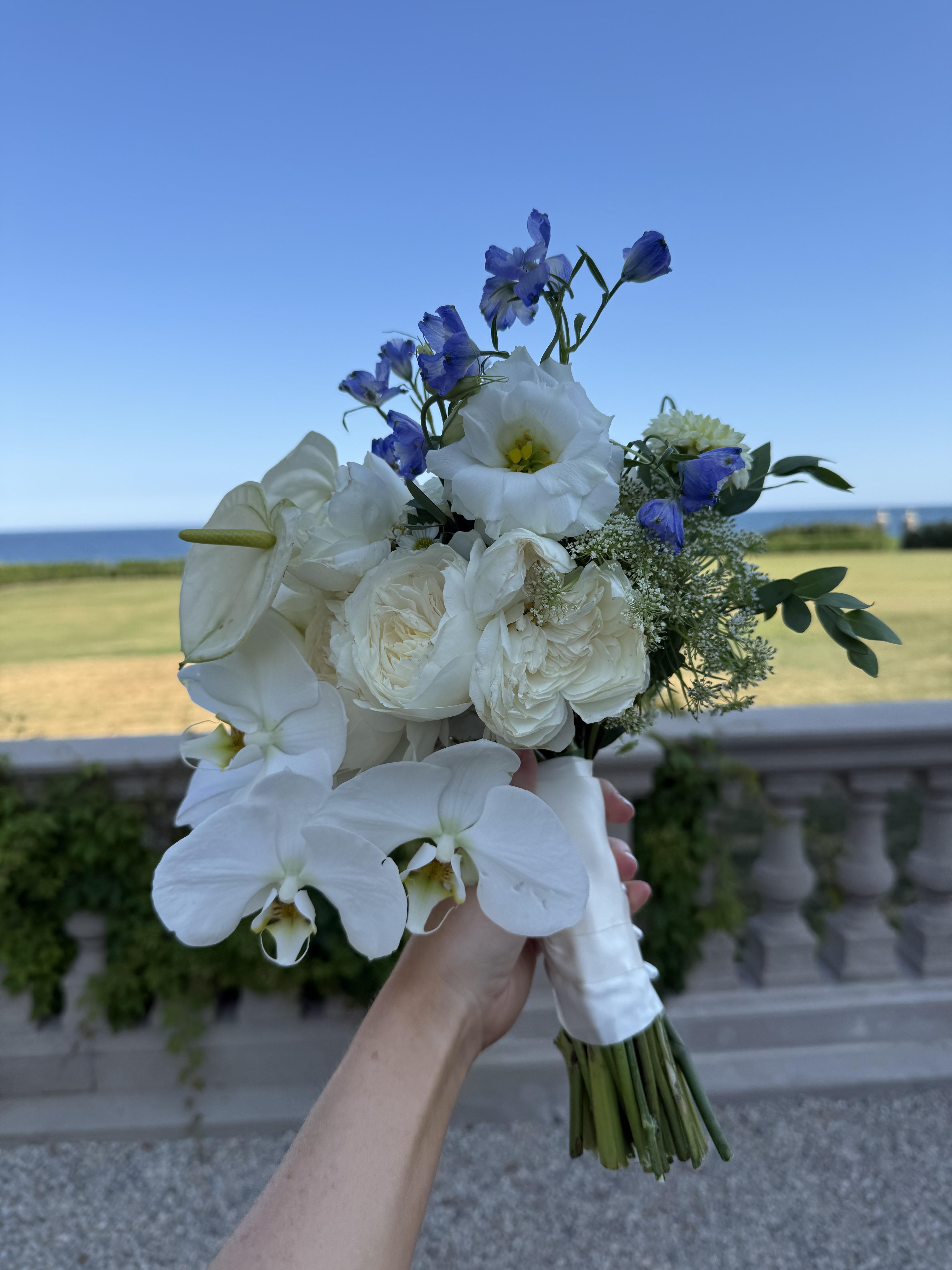 Working with Jenni and her team was a wonderful experience! I was drawn to Jenni's style, and was set on having a classic blue and white color palette. I also loved that the flowers were locally sourced. The Barn Door Blooms team delivered florals to our getting ready location and the reception space, and they looked fresh for a week after the wedding! I appreciated the two phone calls we had to plan out our flowers, and Jenni's advice and kind nature exceeded my expectations.