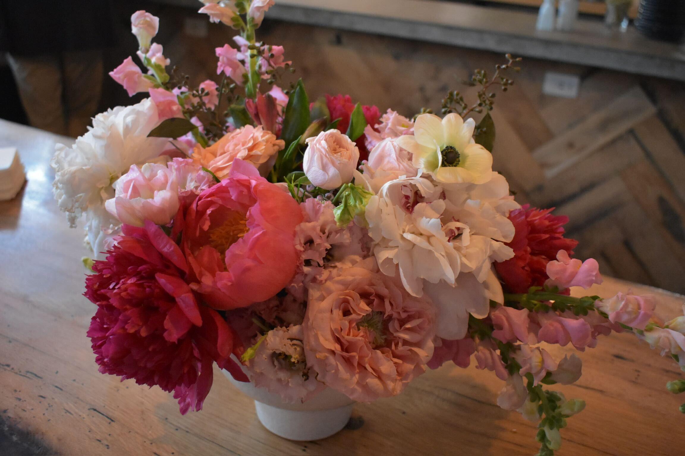 I started my business in 2018, after I finished floral design classes from Cass School of Floral in Watertown, MA. I have had hands on experience from Floral Arts in Westford, MA and have completed over 75 weddings in my time as a floral designer. I have a little intern named Larry, a corgi-pit mix, who is the model for Little Blooms, who you will see a lot of on Instagram. I love using locally grown flowers as much as I can in my work, to really showcase 'farm to florist'.