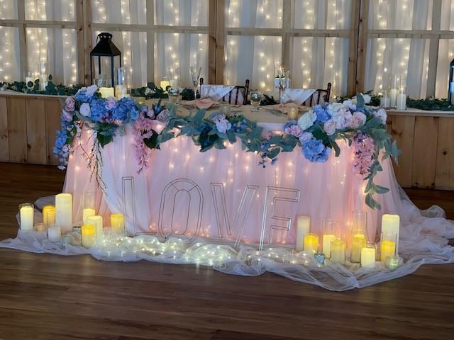 As you'll see throughout her reviews here, Sara lights a spark from the first interaction with her! We didn't have a solid vision other than a vague sense of colors and more of a relaxed, natural theme. Sara took these hints and was off and running! We had a few Zoom chats and every meeting was fun and patient LOL. She brought in gorgeous ideas for innovative displays and I loved how she repurposed the ceremony flowers for the reception. I still swoon looking at the photos and we couldn't have been happier, 100%. THANK YOU SARA and your team for all the light, joy and magic you brought to our day!!