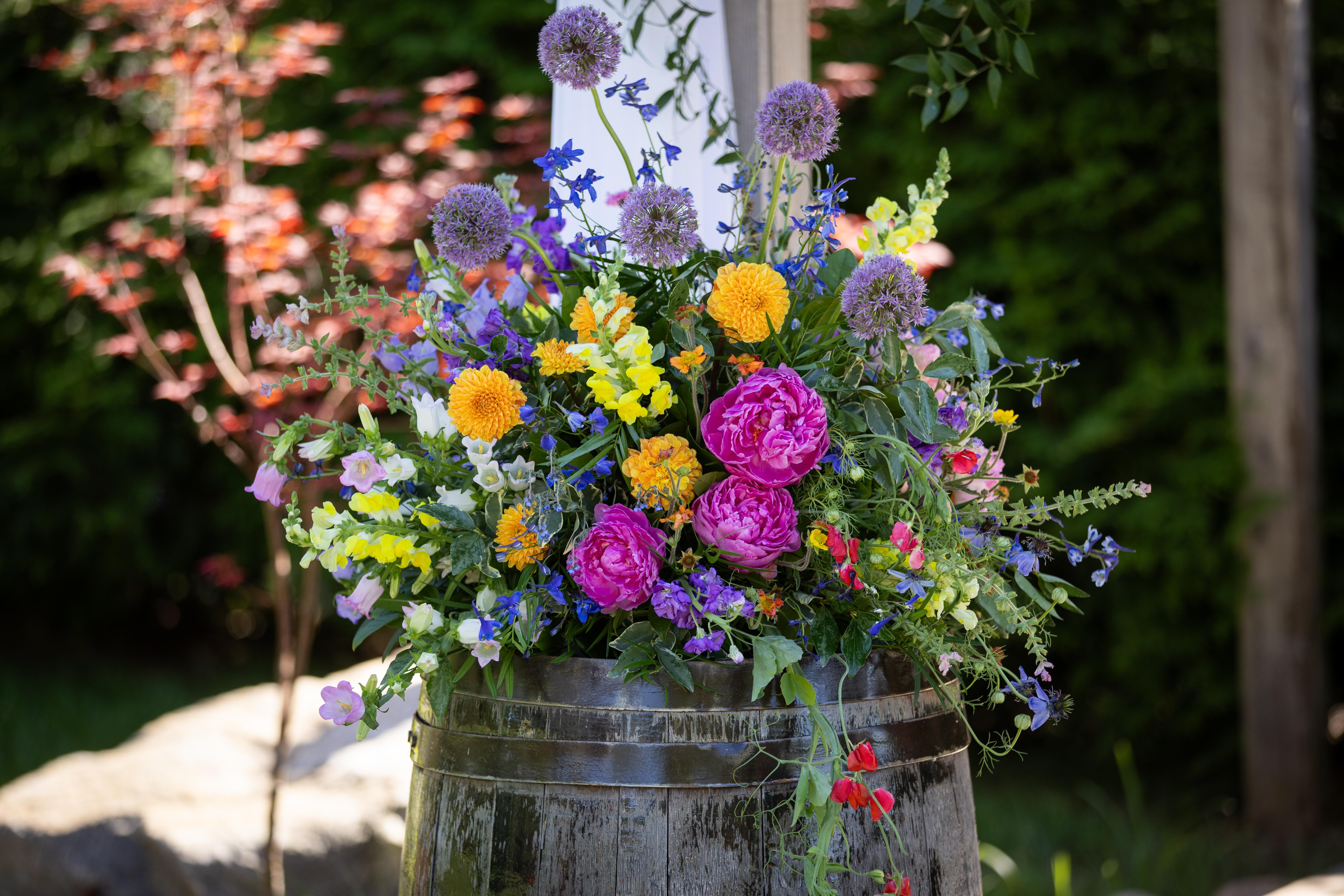 Our design studio is located on our farm in central Massachusetts. We are passionate about growing and designing with unique blooms and pour our hearts into all aspects of our process from sowing seeds into healthy soil, to harvesting and arranging. Our farm, gardens, and the wild landscape around us lends inspiration and drives our designs to be seasonally conscious, a bit wild, and uniquely curated for each celebration. We strive to employ sustainable practices from start to finish.