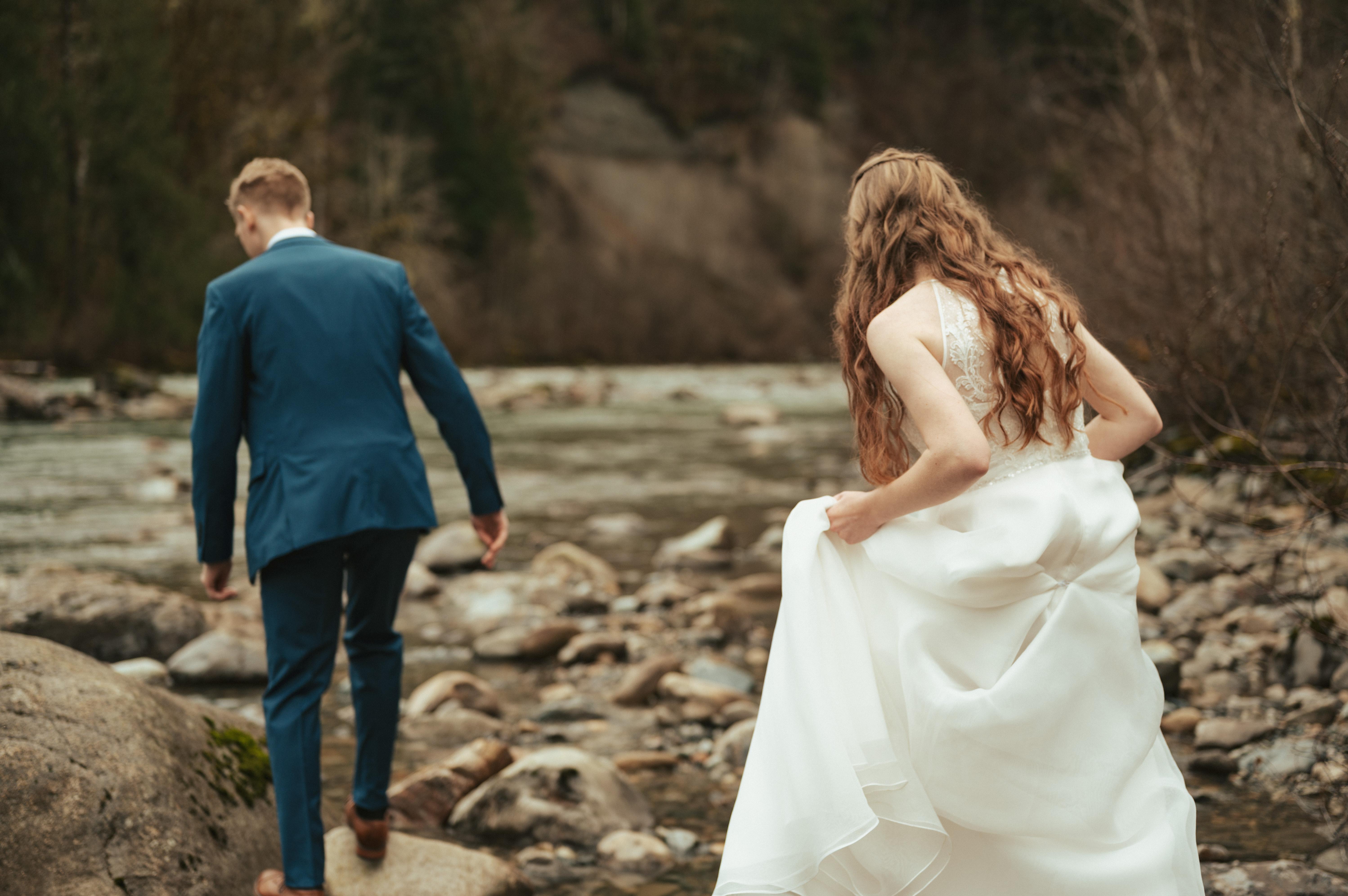 When we began looking for a photographer for our micro-wedding, we gravitated towards Nadia’s images over and over again. Not only did they capture raw, intimate moments between couples and families, but they elevated those moments in elegant and natural landscapes of the PNW; everything we wanted. We reached out and set up a consultation call immediately. We were initially nervous and felt very unprepared to speak with photographers because we had zero ideas for what our special day would look like, but after our call with Nadia we were confident that Venture Ever After was the right choice for us. She was so knowledgeable and did a TON of legwork planning our timeline to best capture the moments we wanted in the lighting we needed, recommending a variety of locations for some private moments as a couple and group activities with our family, and keeping us grounded and calm throughout the entire process. On our wedding day, Nadia took the reigns and gently guided us through the day with compassion and grace. She constantly reminded us that each moment was for us and encouraged us to revel in all of the details. She even conquered some pretty crazy heights armed with multiple cameras and a walky-talky to capture some dramatic and beautiful couple’s portraits. Beyond being an incredible photographer, Nadia is one of the most genuine and kind people I’ve met. She has a knack for keeping elopement/wedding day energy light and helping her clients feel natural in front of the camera. My partner and I truly felt like models. I feel so blessed to have our wedding photographed by her and, above all, be able to call her a friend. I would recommend Nadia at Venture Ever After to everyone planning an elopement, wedding, or adventure in the PNW. In fact, I hope to be able to visit her and capture anniversaries and momentous occasions for our family long into the future.