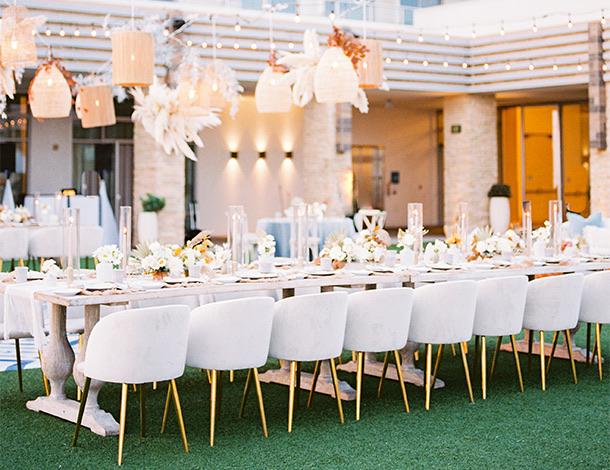 Beyond the stunning beachfront resorts Huntington Beach offers you several diverse venue settings to choose from. The Waterfront Beach Resort and Hyatt Regency Huntington Beach provide breathtaking ocean views with dedicated oceanfront ceremony lawns and multiple reception ballrooms to fit your vision. Kimpton Shorebreak Resort gives you a boutique downtown experience just steps from the iconic pier. The Griffith House welcomes you with charming Spanish-style architecture and wheelchair-accessible pathways throughout its grounds. Meadowlark Golf Club offers a bright airy ballroom alongside beautiful outdoor ceremony space where nature provides the perfect backdrop.