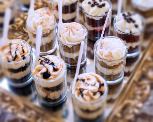 Caketini Bar. Co by Jayna & Joey offers a unique, fun, one of a kind cake experience for you and your guests. You choose 4 cake flavors, fillings, frostings, and toppings. We create a custom menu to place on the cake bar that we bring to your event. Each guest then comes up and tells us their favorite combination, we make it and serve it to them in a cute martini glass and off they go to enjoy their very own Caketini Creation. However we do offer a 2 tier cake for the traditional cutting and photos in addition to our Caketini Bar. Let your guests choose the cake they love! Not what's chosen for them!