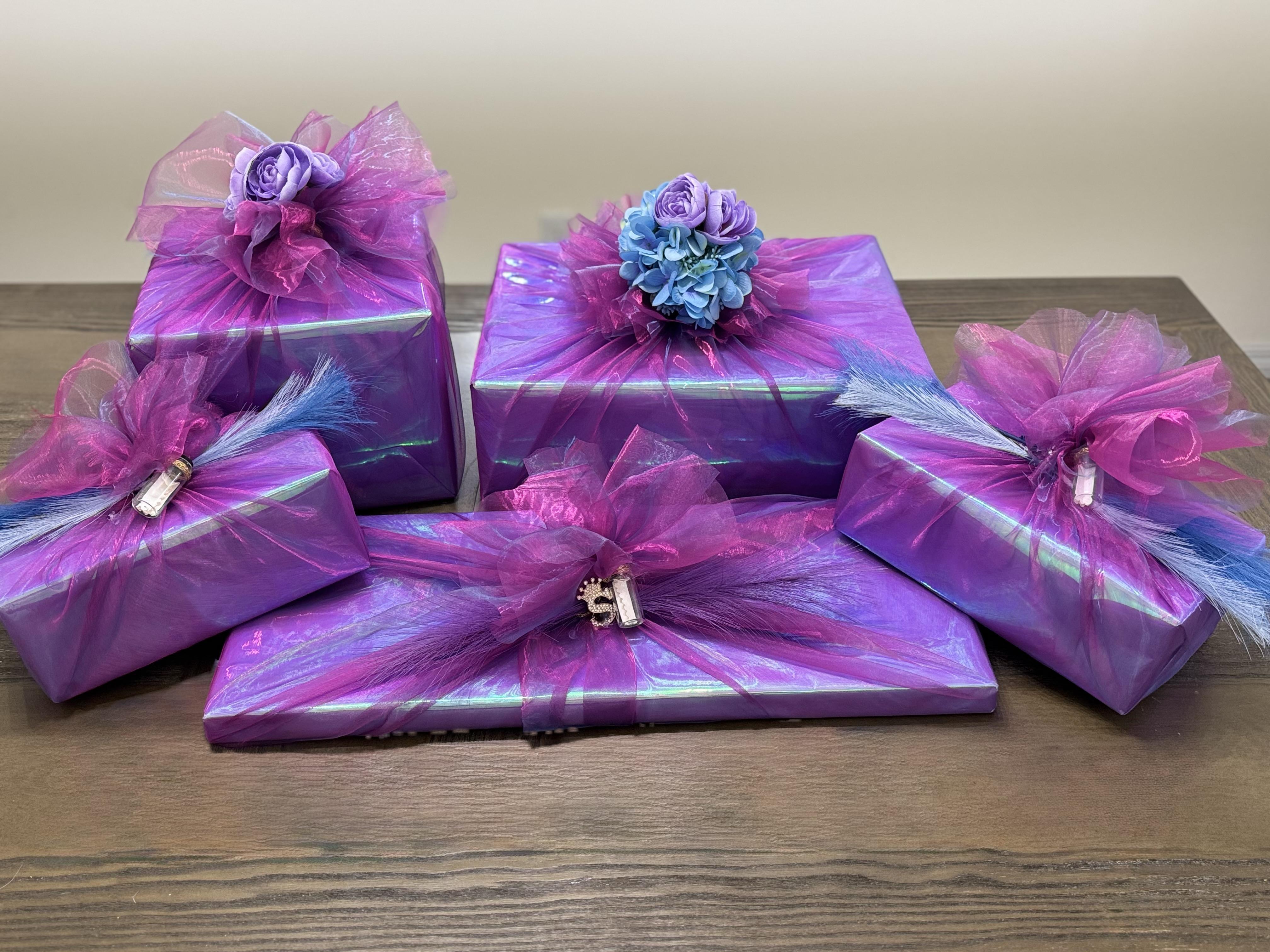 We wrap gifts for all occasions and believe that your gift should be just as special on the outside as it is on the inside. Whether it be by adding a customized ribbon, a little bit of bling, or some over the top charms, we will make your gift a showstopper. We also specialize in party favors and custom wedding items. Show your guests appreciation for attending your special occasion by giving them unforgettable treat and goodie bags. Our creations will intrigue guests and will get your event started on the right foot with customized save the dates, invitations, and centerpieces.