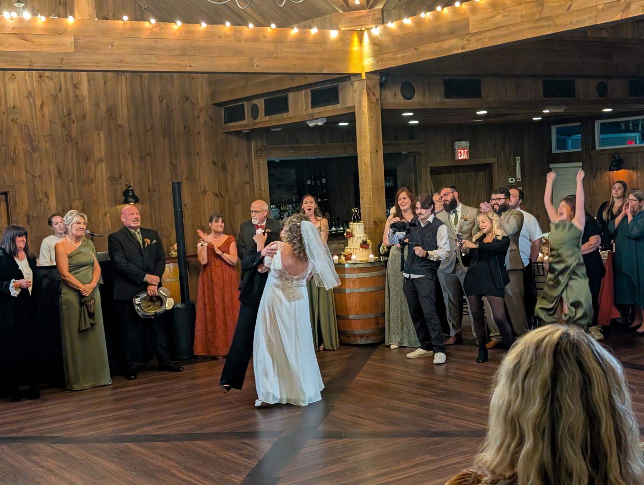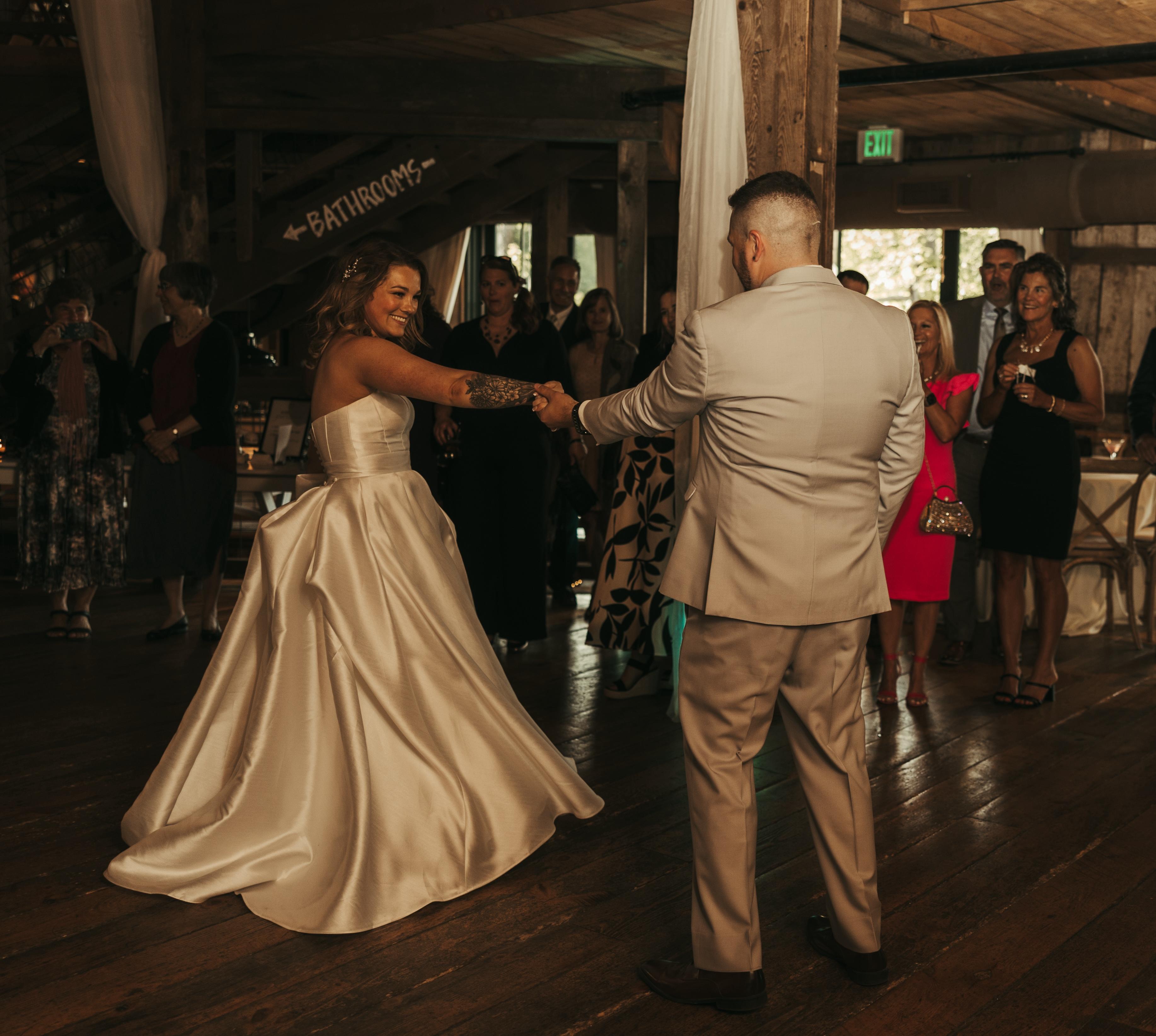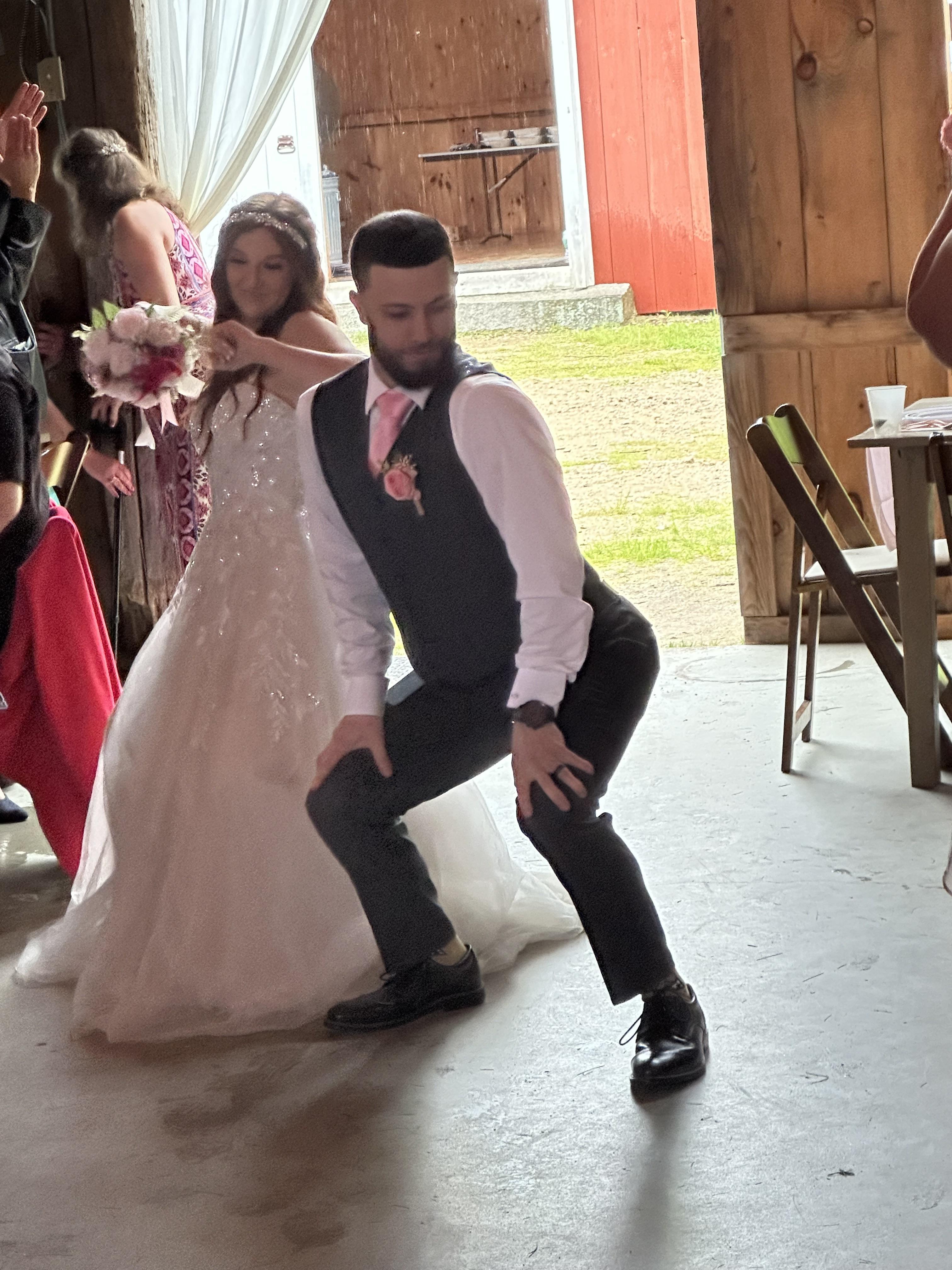 Justin did an INCREDIBLE job at our wedding. His preparation and attention to detail beforehand was immaculate, as he spent over an hour with my partner and me going over the entire wedding day step by step. The sound systems were flawless- everyone could hear our vows during the ceremony and the quality of the sound during the entire day and night was exceptional. He kept our wedding very organized and was the perfect host. Regarding the music selection, he allowed us to make playlists for the cocktail hour and reception which he stuck to using beautiful transitions between songs. Our guests were dancing the entire night! All of our guests said it was the most fun wedding they had ever attended. 10/10 DJ, would definitely recommend him for any event. I included a pic of me doing the worm in my wedding dress. The dance floor was too packed so I had to do it on the side!