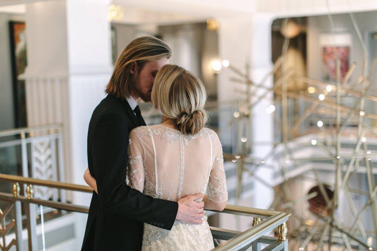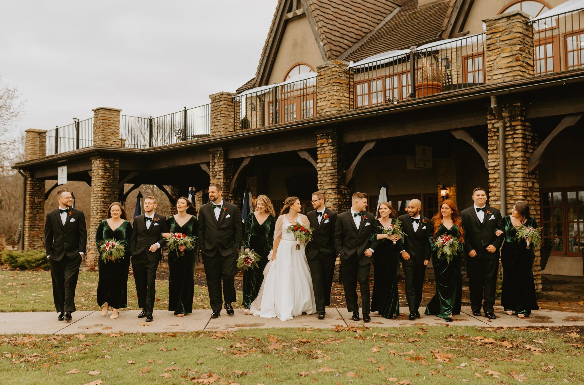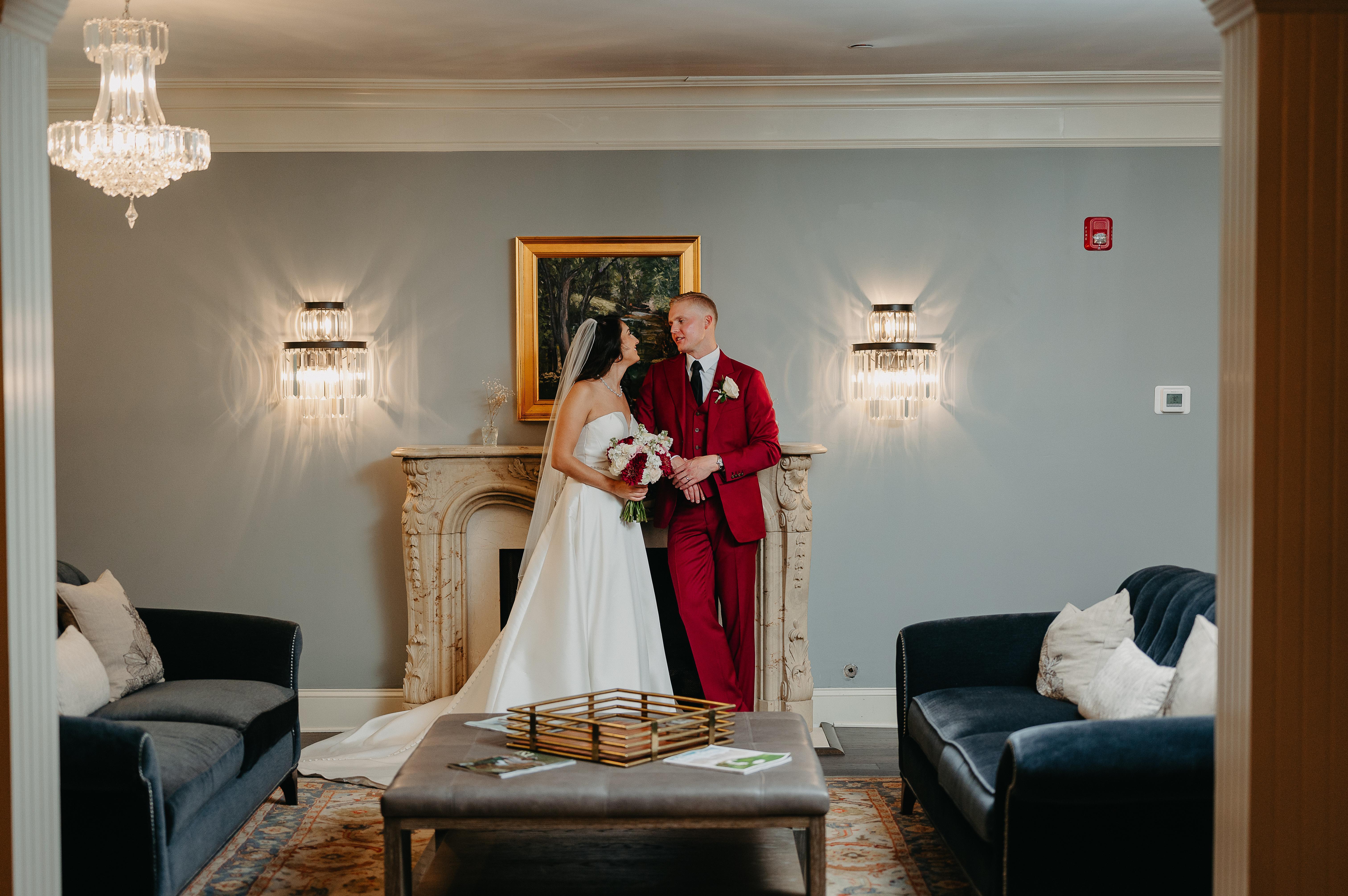 We love working with couples at Nationwide Hotel for several reasons. First, it is logistically so much easier for couples to have everything taking place in one location. They can stay overnight the night before, get ready there, ceremony, photos, reception, and then afterward all of their guests can stay right there. This means there is no need to coordinate guest transportation, off-site hotels, bridal party transportation for photos, or have an elongated break for photography after the ceremony since it is much faster to do on site. Second, there are plenty of outdoor spaces for couples or bridal party photos if it rains! This is a huge advantage that not all venues have and rain is a real concern for an Ohio wedding. Third, there is a variety of spots on the property for doing group or couples photos. You can have the look of brick, green lawn, the beautiful pergola with all the greenery, the iconic covered walkway, some flowers, a tree-lined area where the leaves change colors SO perfectly in the Fall, and of course the fountain! By the way, the pond is amazing for sunset photos! We have been at Nationwide many times as photographers and always had a great experience. The food was always hot and served on schedule, and their staff is so friendly and genuinely wants to create the best experience for their guests. You cannot go wrong with any of their event spaces!