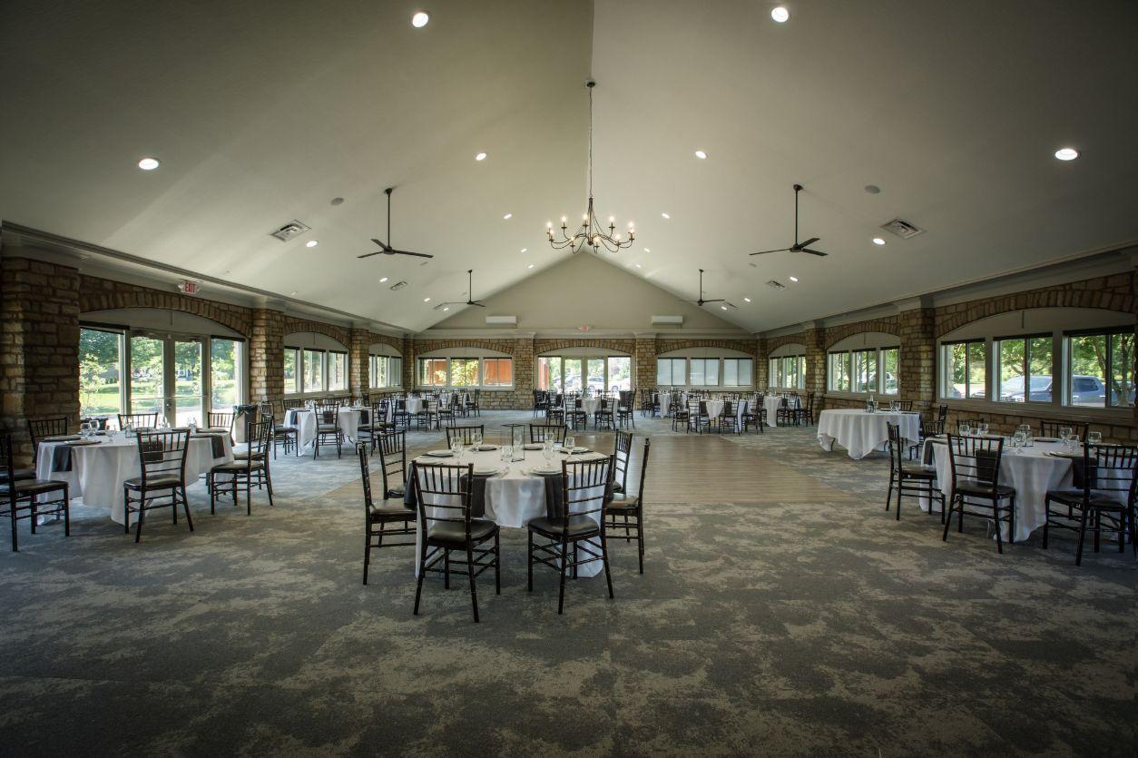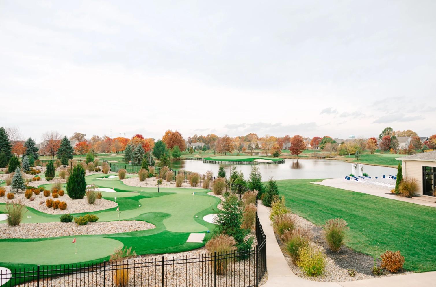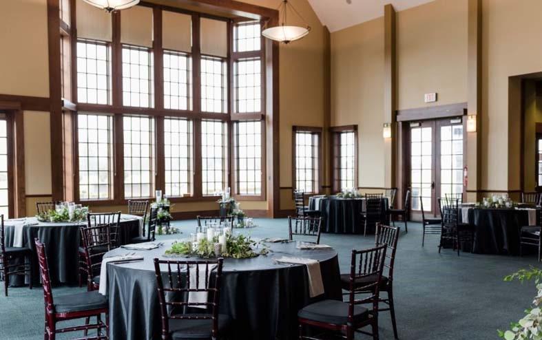 A modern clubhouse located in scenic Dublin, Ohio with neutral tones, unique light fixtures, vaulted ceilings and patio with scenic views of the 18th green Our Executive Chef Marc Simak provides a unique experience, customized to each individual wedding using fresh and locally sourced ingredients. Our experienced event professionals are ready to create the wedding of your dreams through attention to detail, tailored experiences and flawless execution, beginning to end.