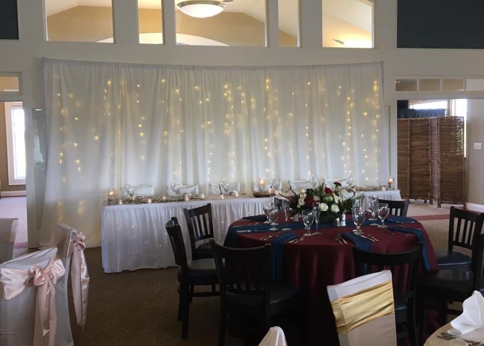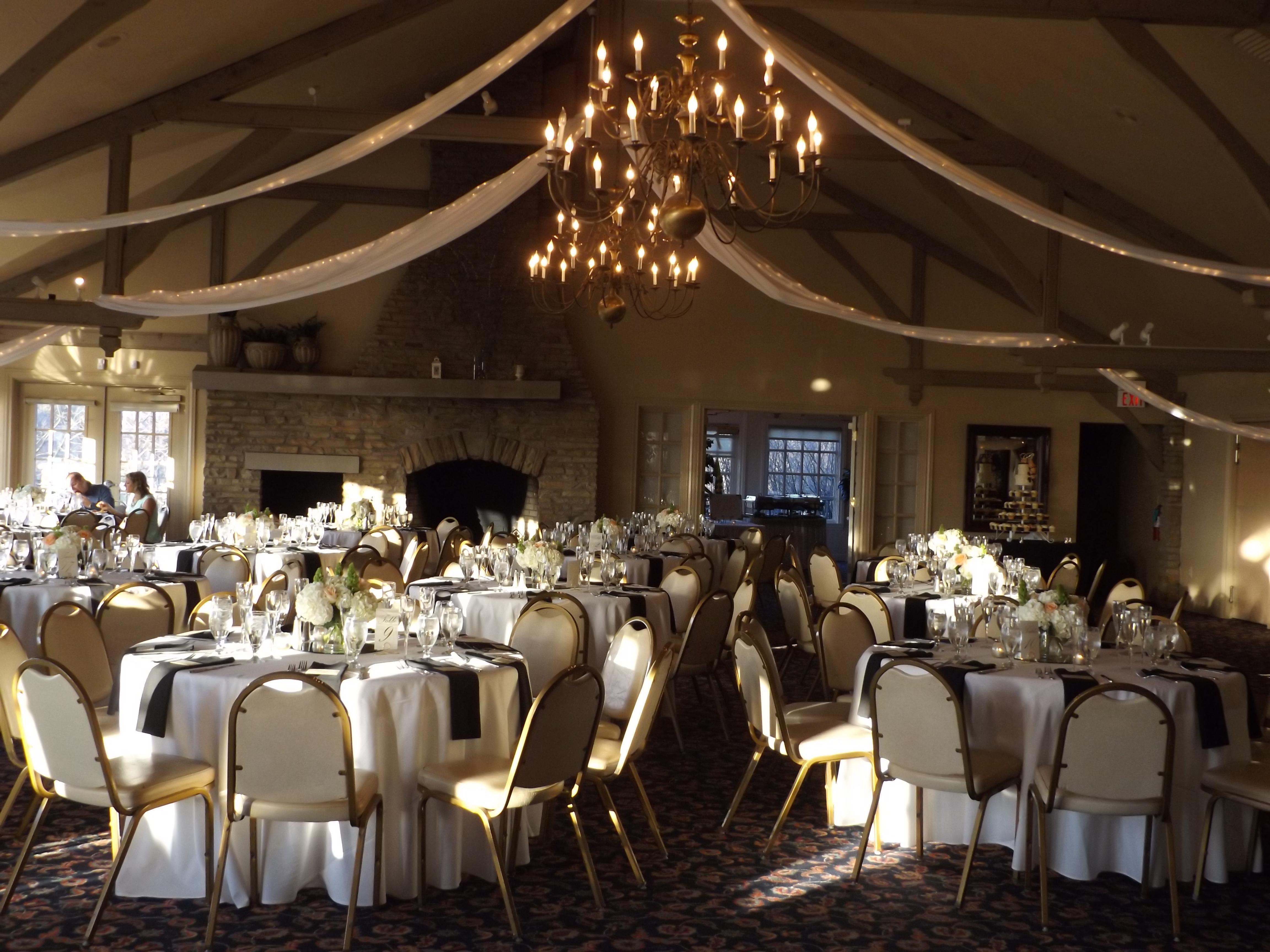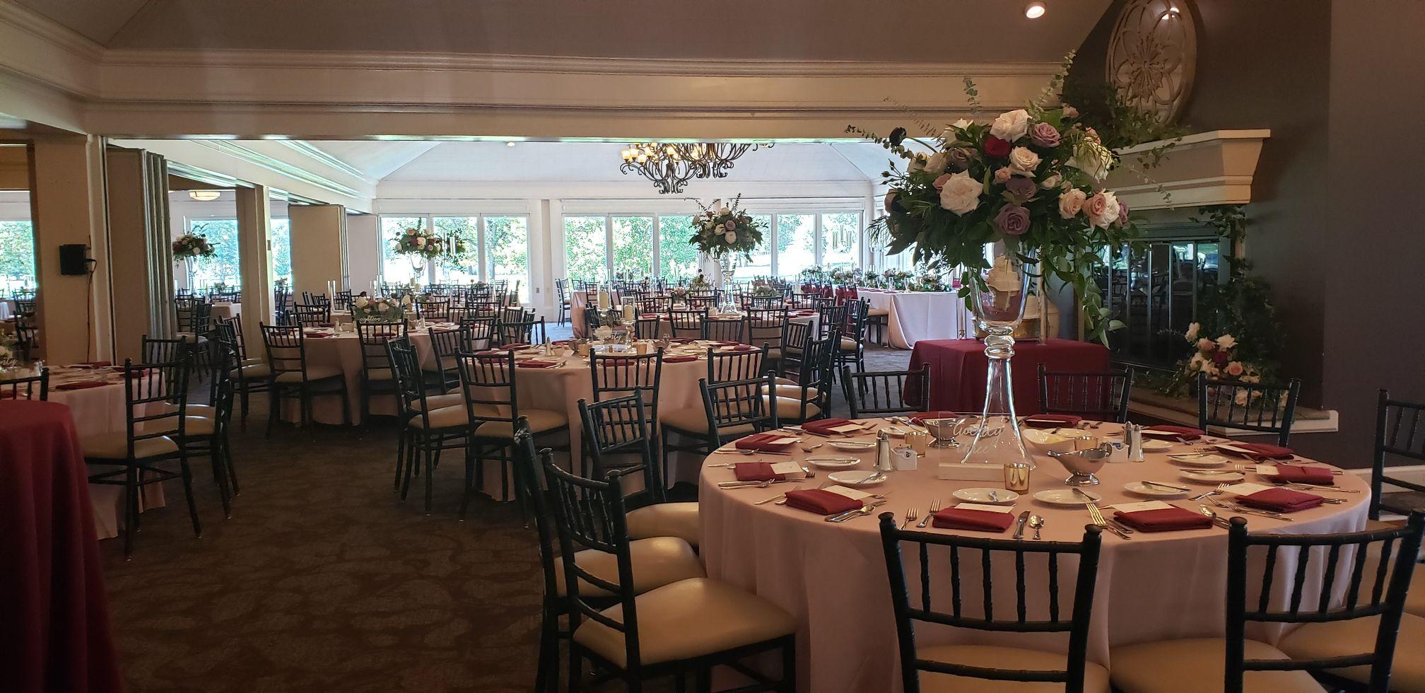 We have 4 beautiful banquet rooms that over look the golf course. With a covered patio called the terrace room. All the rooms open up to each other. We can hold up to 175 guests. We provide all catering through our in house chef. We provide all services, food, bar, set-up, tear down, linens, napkins and China, staffing and bartenders. All you have to bring is a DJ, dessert, photographer, minister, and florist. We also provide you with an event coordinator for the entire day. Along with rehearsal scheduled the day before your wedding.