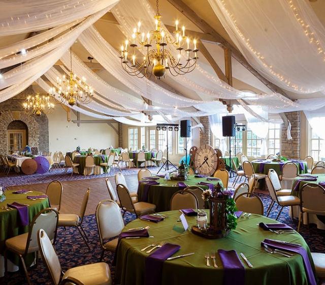 The Medallion Club is a classic country club and ballroom wedding venue located in Westerville, Ohio. Couples can choose to use any of the four event spaces, ranging from scenic indoor to uncovered outdoor areas. Use the main ballroom for your grand reception, able to hold up to 330 of your loved ones. This space sports a large dance floor, intimate lighting, and lovely views of the pristine course outside. The grounds have so many picturesque locations it’ll be hard not to take great photos!