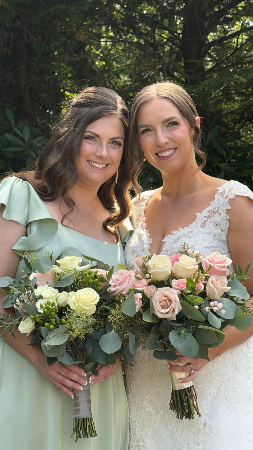 I had the pleasure of working with Rachel & Heather for our wedding, and they truly made us feel like royalty. From start to finish, their professionalism, talent, and warmth exceeded all our expectations, making our special day even more unforgettable. Consultation and Trial: From our first meeting, Rachel impressed us with their thorough consultation process. She took the time to understand my personal style, preferences, and the overall theme of our wedding. The trial session was a wonderful experience where I could see her and Heather's skills firsthand. They were patient, attentive, and open to feedback, ensuring that every detail was perfect. I really appreciated the fact I could get both my makeup and hair done with the same company, and that my trial was included in the overall price! On the wedding day, Rachel and Heather worked their magic. Their attention to detail were evident. The makeup was flawless without feeling heavy or overdone, my bridesmaids and my mom and now husband's mom all decided to try lashes for the first time :). The hairstyles were elegant and held up beautifully throughout the day, despite hours of dancing and celebrating. Each look was personalized and perfectly suited to each member of the bridal party. The team arrived on time and prepared, which made the morning of our wedding stress-free and enjoyable. They managed their time efficiently, ensuring everyone was ready well before the ceremony. Their calm and friendly demeanor helped ease any pre-wedding jitters, creating a relaxed and fun atmosphere. We couldn’t have asked for a better hair and makeup team for our wedding. Rachel & Heather made us feel beautiful, confident, and special on one of the most important days of our lives. Their talent, professionalism, and warmth made the entire experience wonderful. Thank you!!!!
