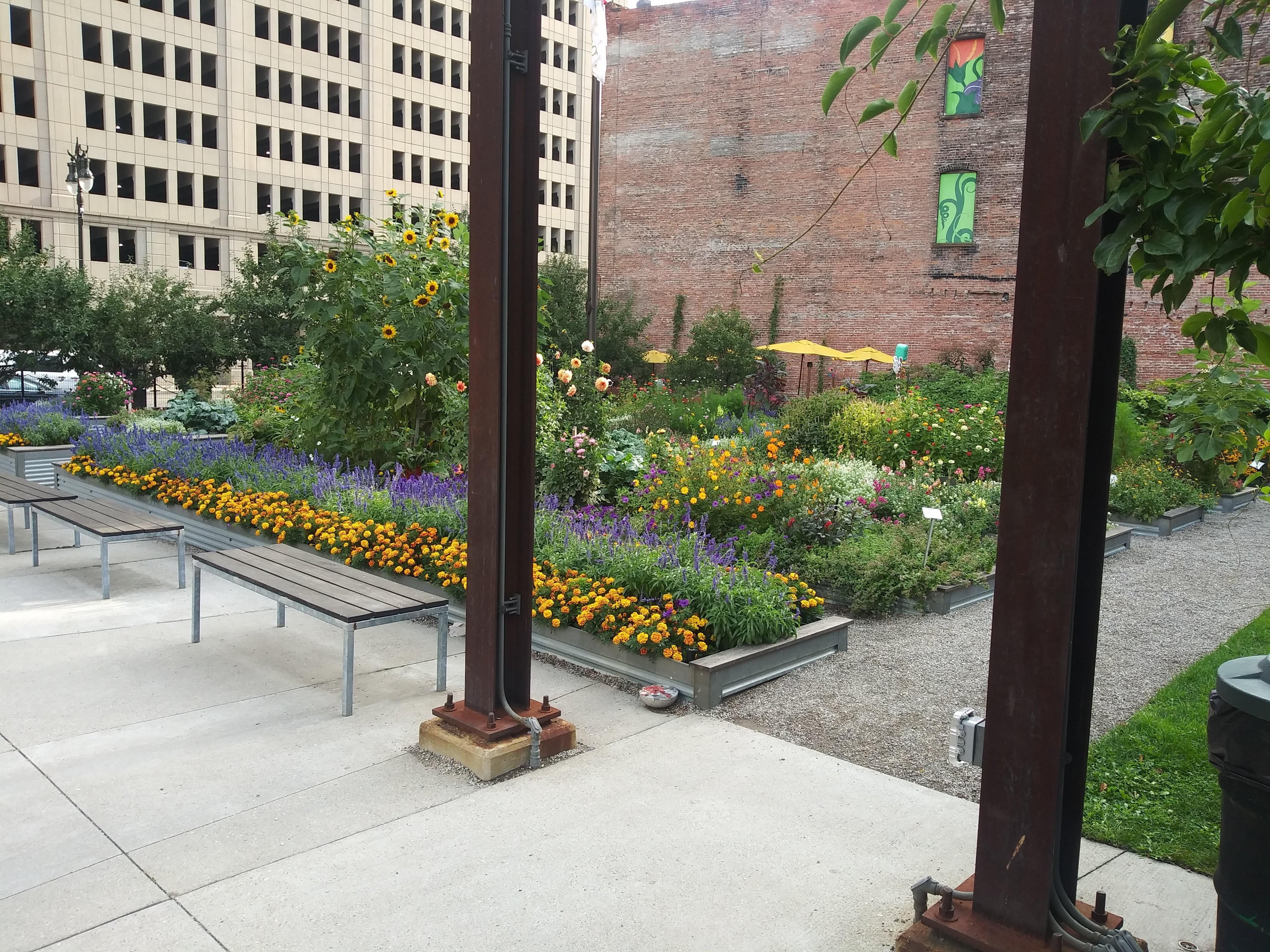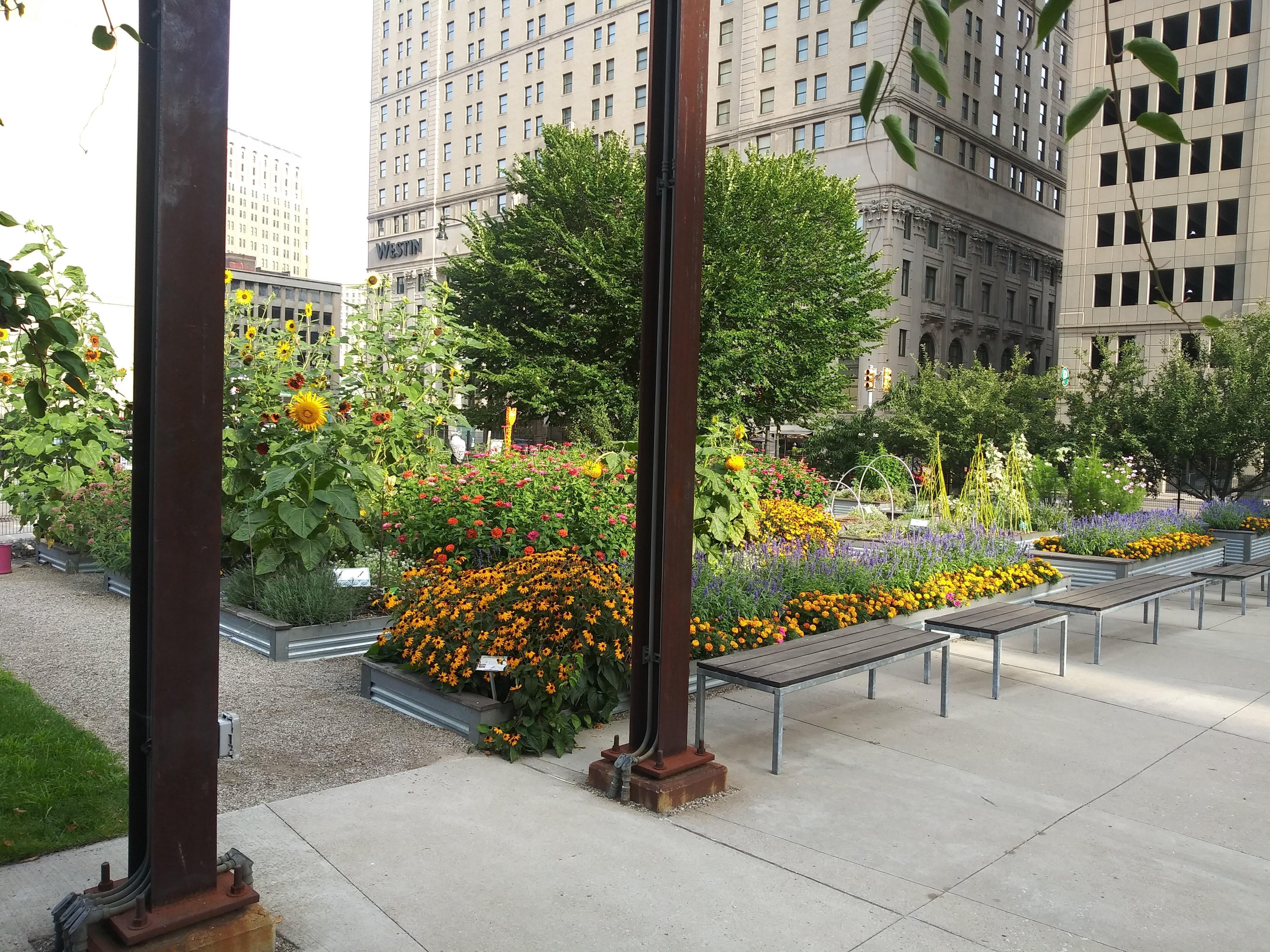 Lafayette Greens is a green space and urban garden in the heart of downtown Detroit, next door to the famous Coney Islands and across the street from the fabulous Westin Book Cadillac Hotel. The award-winning garden, created by Kenneth Weikal Landscape Architecture, was donated to The Greening of Detroit by Compuware in 2014 and is a place of beauty. A certified pollinator garden, focused on growing plants for butterflies, native and honey bees and birds, your ceremony could take place amongst the fluttering of butterflies, chirping of birds and happy hum of bees.