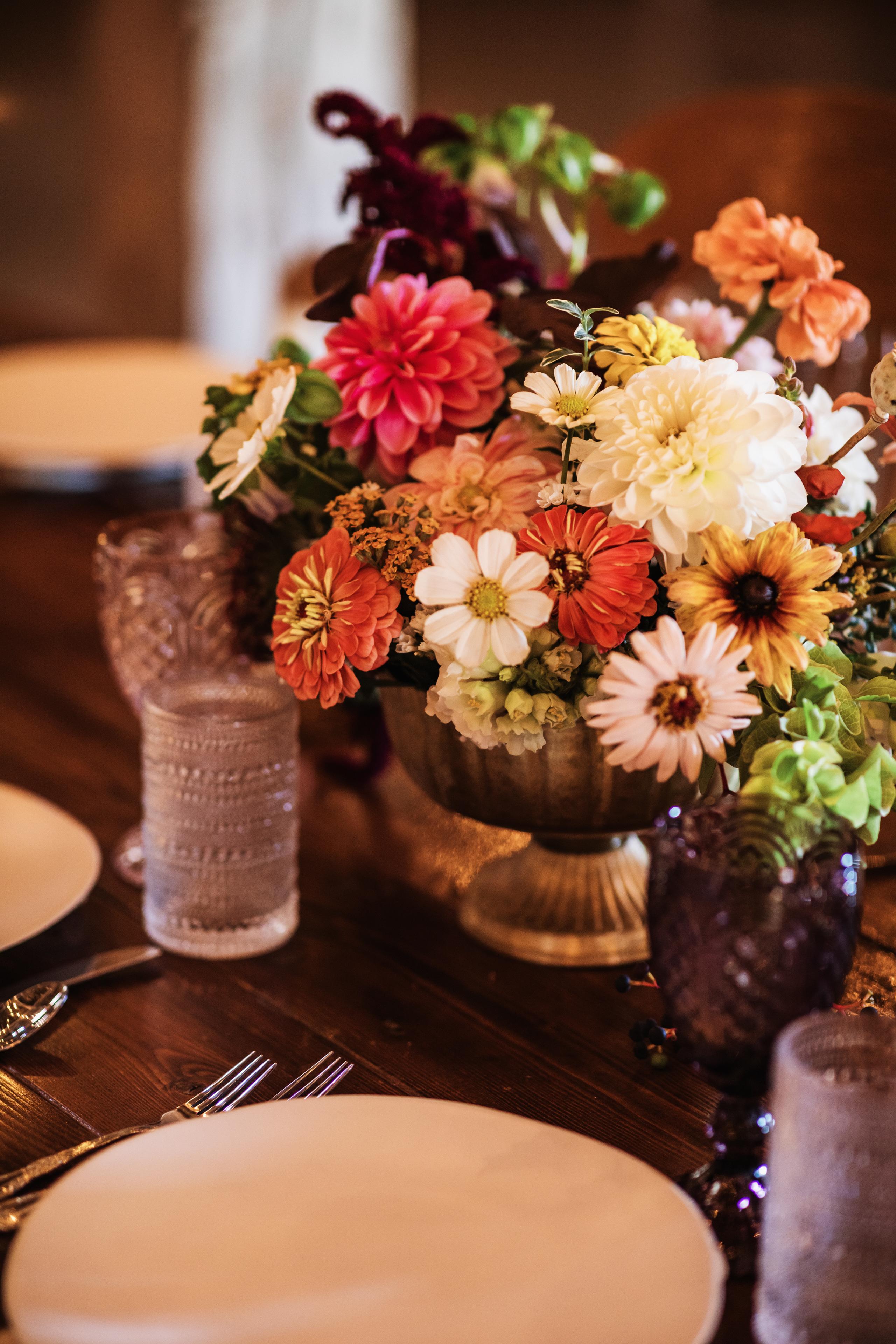 Two Roots Farm was an absolute dream to work with for our wedding florals. Their communication was clear, timely, and completely transparent throughout the entire planning process. The final product was gorgeous - the bouquets, centerpieces, and other floral arrangements they created were natural, beautiful, wild, and creative. I had very little vision for the flowers and let Two Roots take the lead, and they put together stunning, colorful florals that perfectly complemented the wedding location and atmosphere. I especially loved the unexpected and fun touch of the wild raspberries they included in my bridal bouquet. I loved that the flowers were locally grown just a few miles from my home and would highly recommend this team for any wedding or event!