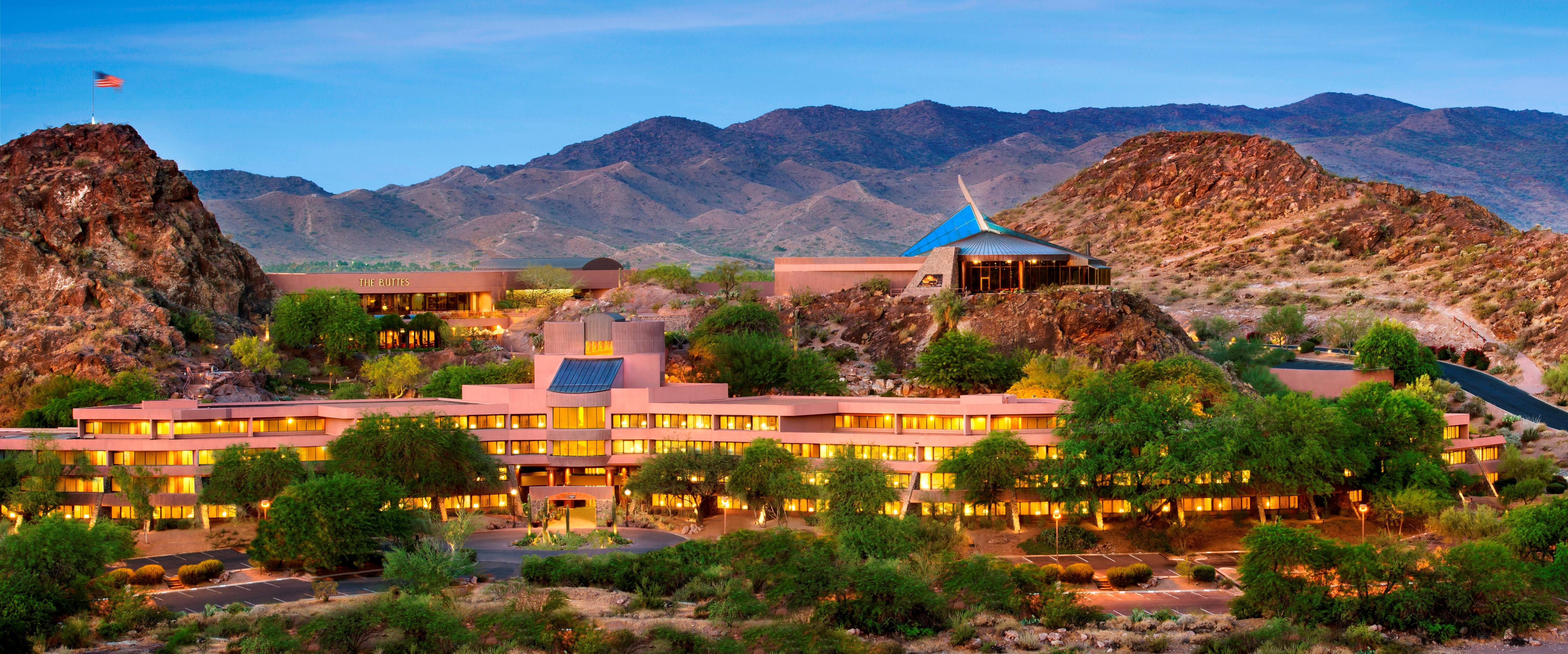 Phoenix Marriott Resort Tempe at The Buttes offers multiple ceremony spaces with natural rock formations, cascading waterfalls and panoramic desert views. You'll love how the natural landscape creates a dramatic setting for your vows.