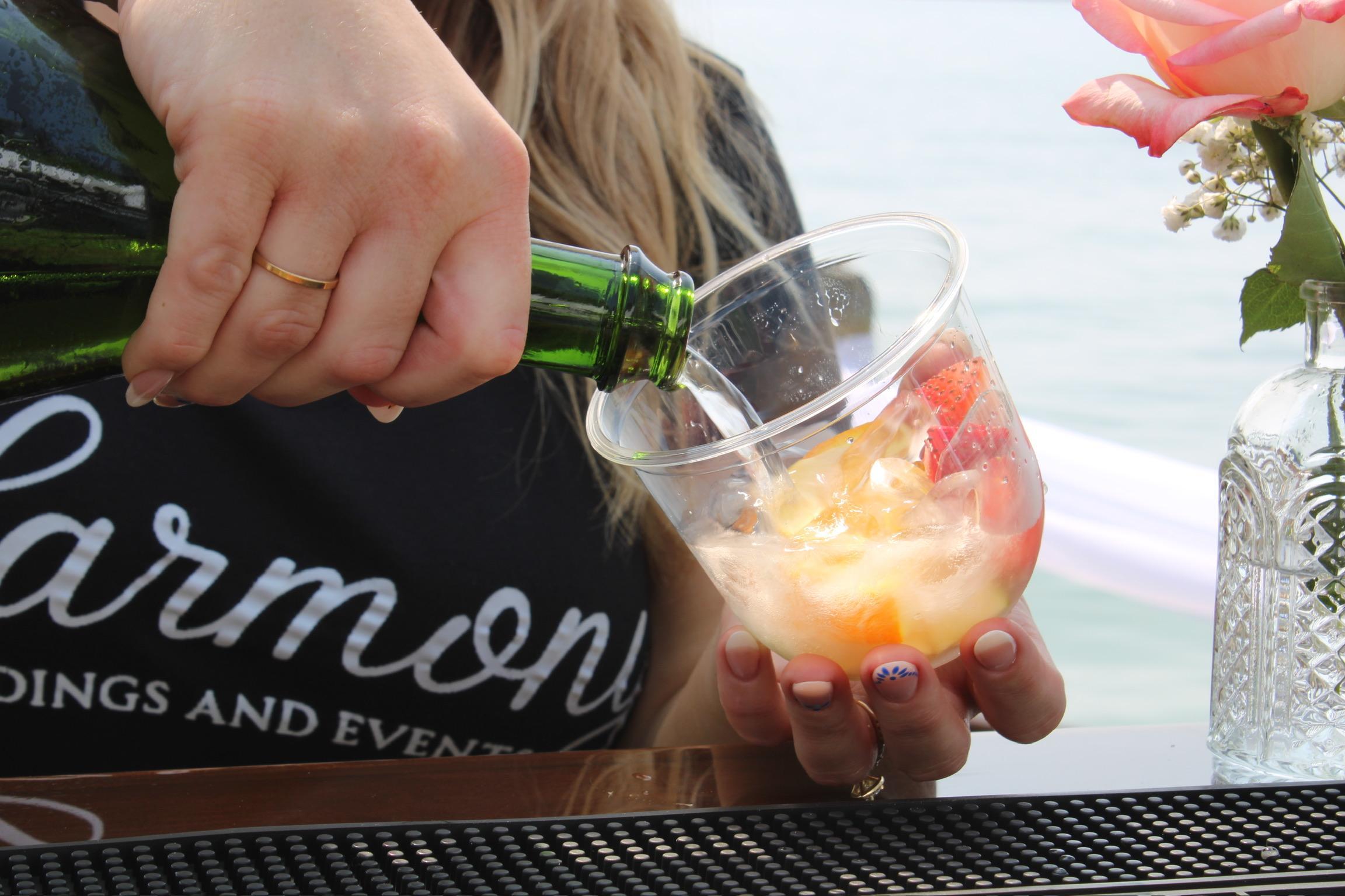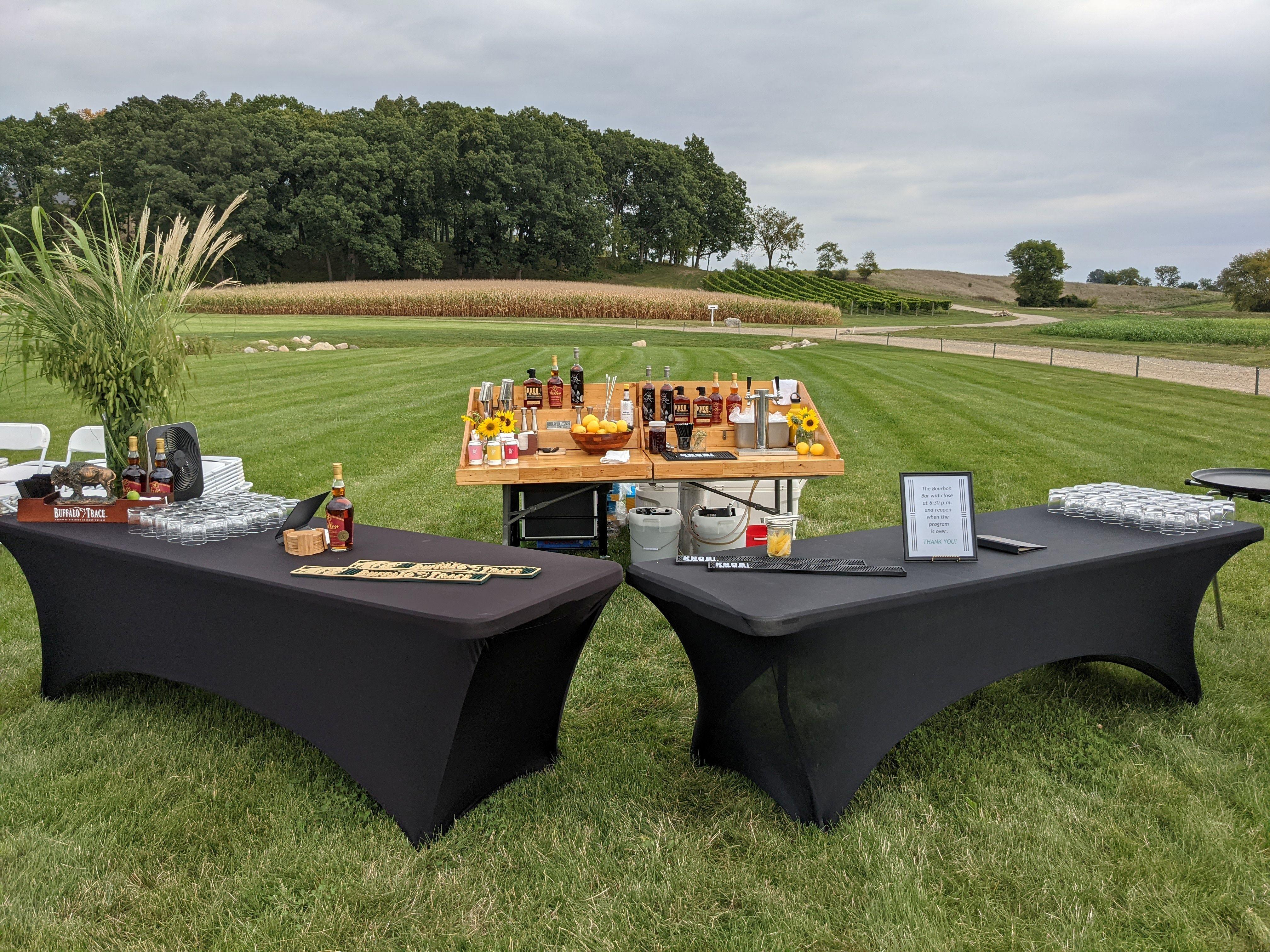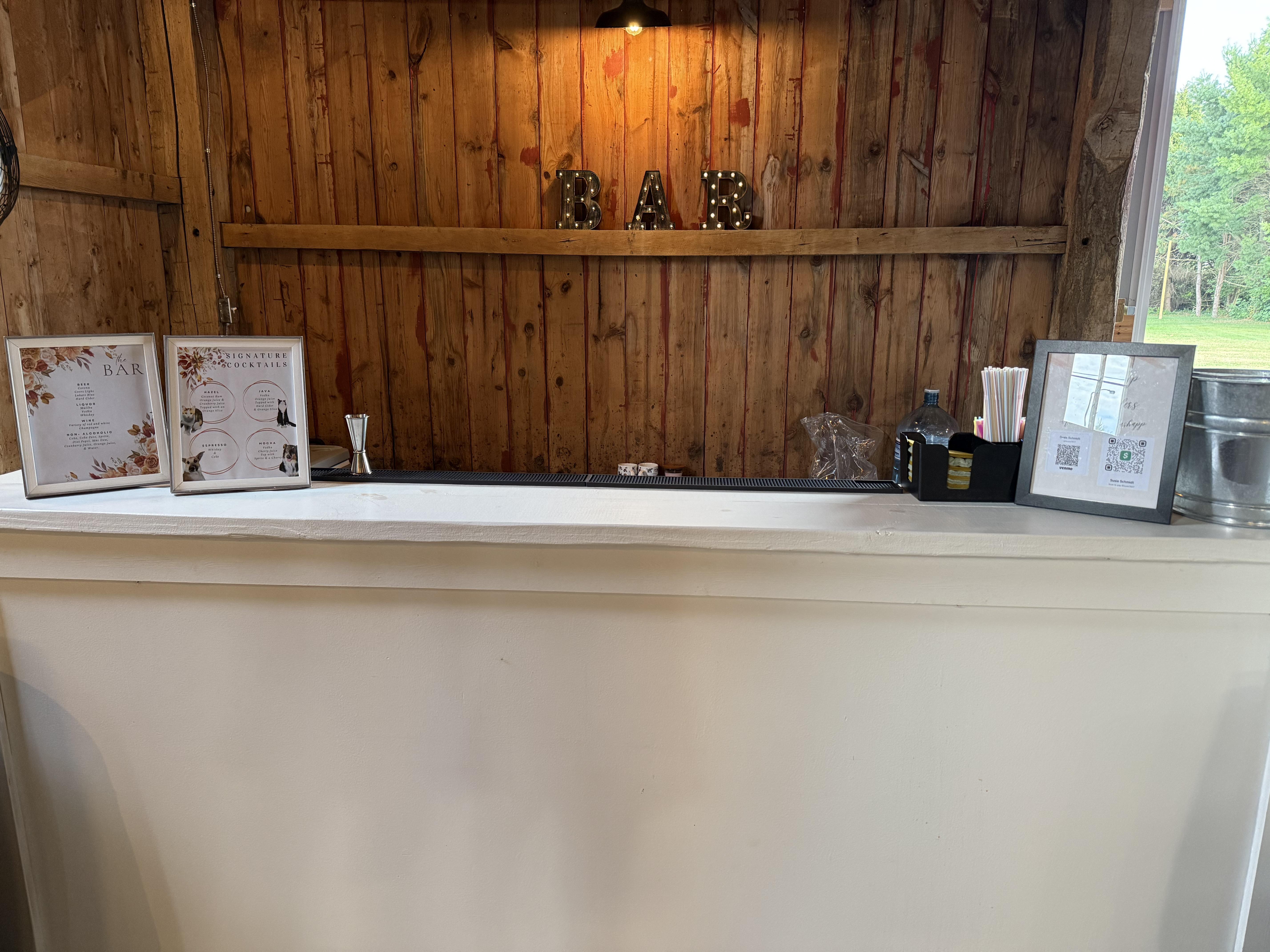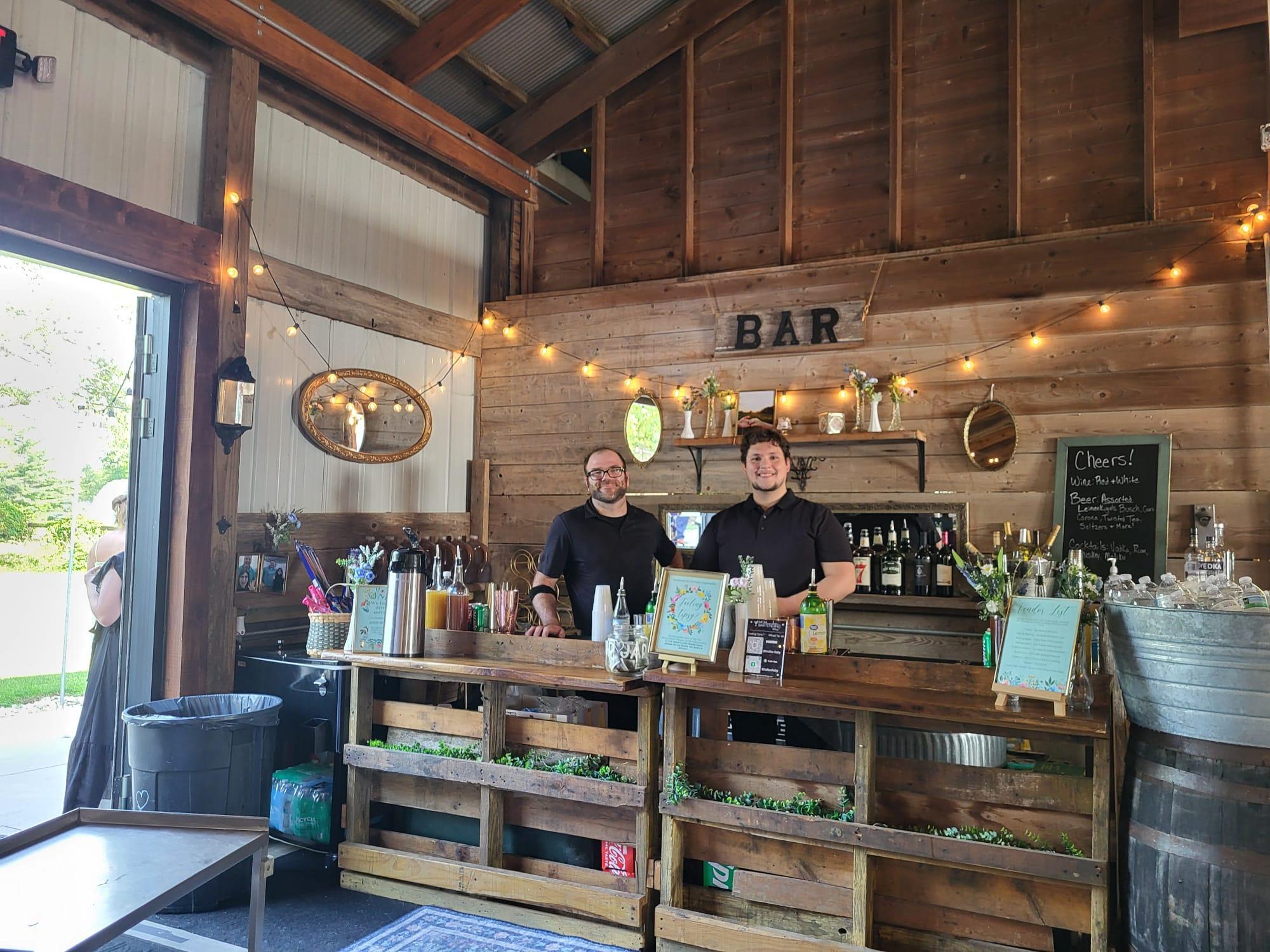 We are Harmony Weddings and Events, a mom and daughter duo with a mission for efficient and beautiful wedding services. We love creating signature menus and crafting unique cocktails! We can bring as much or little as you need, providing all the extras or as little as just the bartenders. We are licensed and insured in Michigan. We have several different bars to choose from, our brown bar, white or black, whichever fits your esthetic best!