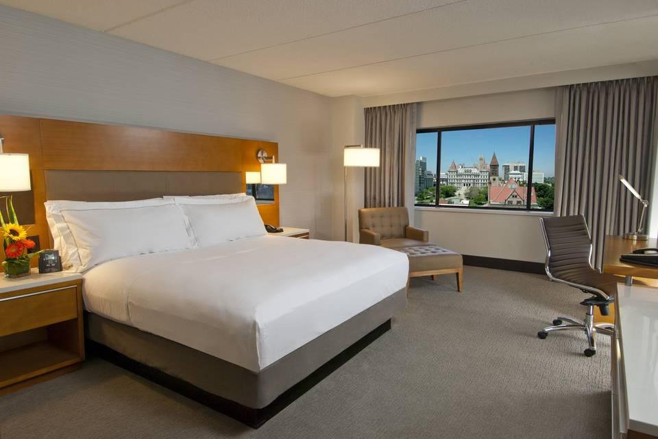 Loft 433 partners with Angelo Mazzone through Mazzone Hospitality to deliver exceptional cuisine that pairs perfectly with its industrial-chic aesthetics and stunning Hudson River views. Your guests will be impressed by both the food and atmosphere. Franklin Plaza Ballroom combines its riverside location with exquisite food and service that consistently earns recognition for culinary excellence throughout the Capital Region. The Hilton Garden Inn Troy provides quality banquet facilities for comfortable wedding celebrations where you can count on professional service and reliable quality for your reception meal.