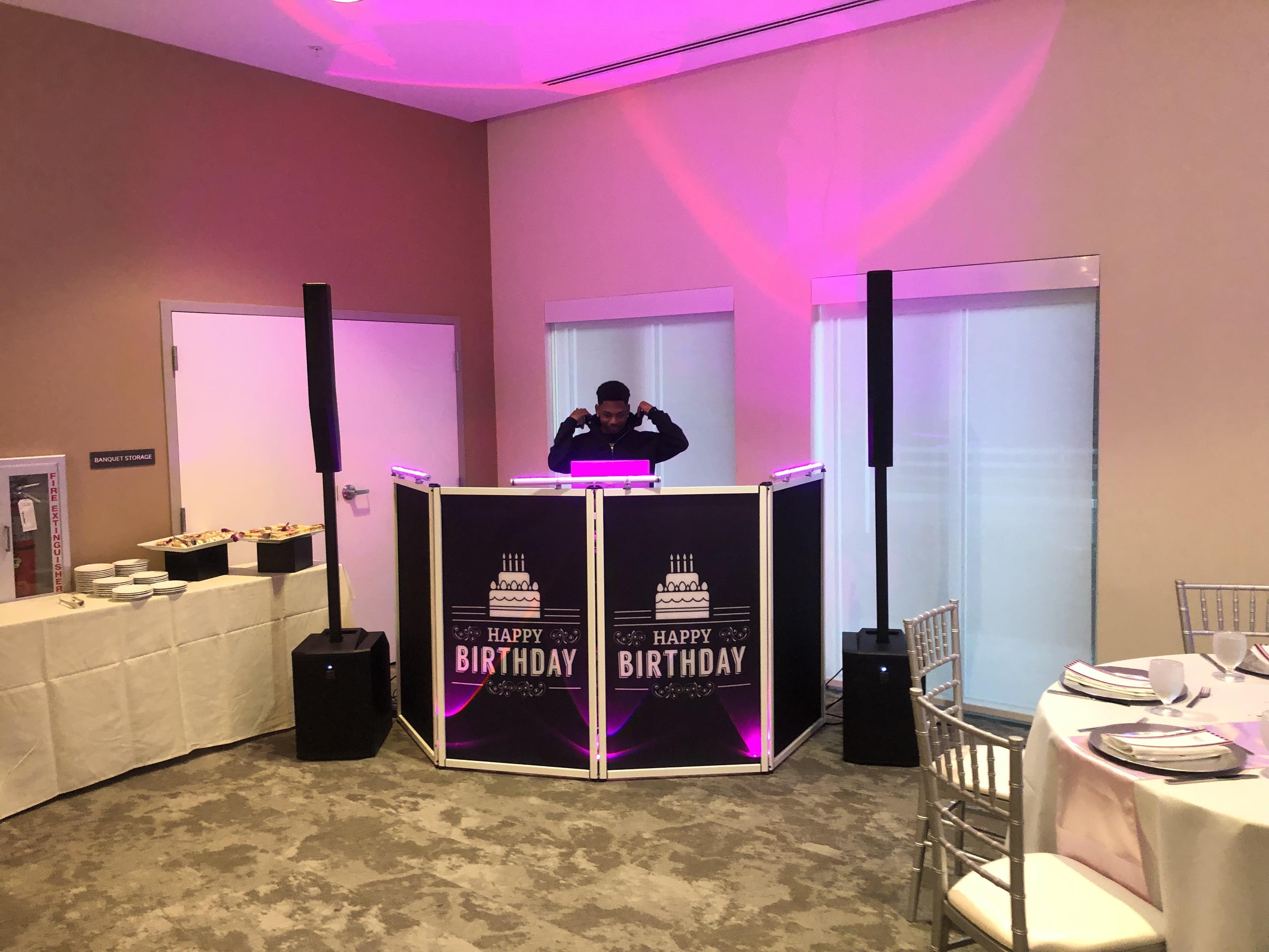 I would highly recommend Black Door Productions. Anthony was so easy to work with. He asked all the right questions, and was thoroughly prepared before the event. Besides being punctual, I really liked that he didn't take over the celebration, but was quietly in the background. The music was perfect! His announcements exactly on time! He even had a screen with our event name which was a beautiful addition. I can't imagine hiring anyone else to DJ an event. He is the best!!!!!