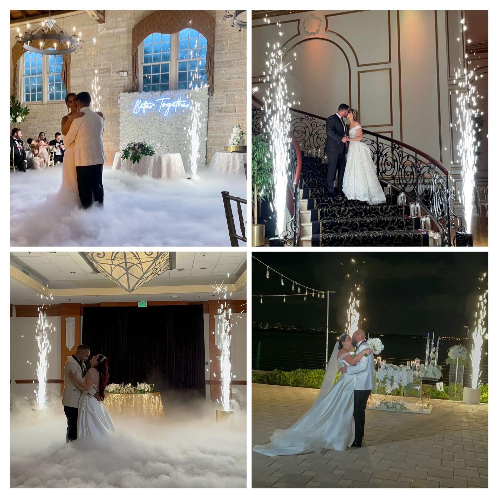 We offer a variety of additional products and services that you may choose from, and for most of these, we can offer discounted pricing if you hire us for DJ services. These are the most popular below: Projector & Screen, MC services, Professional uplighting (Wireless & Wired), Photobooth Regular and 360, Performers (Dancers/Stilt Walkers/LED Robots), Bands and Musicians, Cold Sparklers, Dancing on the cloud (Dry Ice effect for 1st Dance) and Monograms.