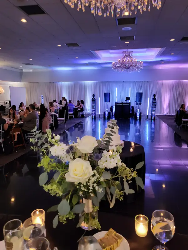 The complete experience for couples who want the "Wow" factor. This all-inclusive package combines our high-energy dance floor lighting with elegant room decor lighting. By washing the perimeter of your venue in your specific wedding colors, we create an immersive atmosphere that ties your entire theme together. From a warm, romantic amber glow during dinner to a synchronized club-style light show during the party, we control the entire mood of the room.