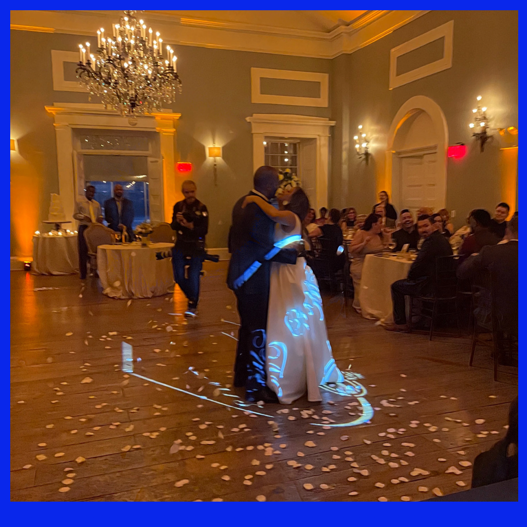 Cocktail hour Ceremony 8 hrs of dj/mc service reception Dance floor lighting Wireless mic system