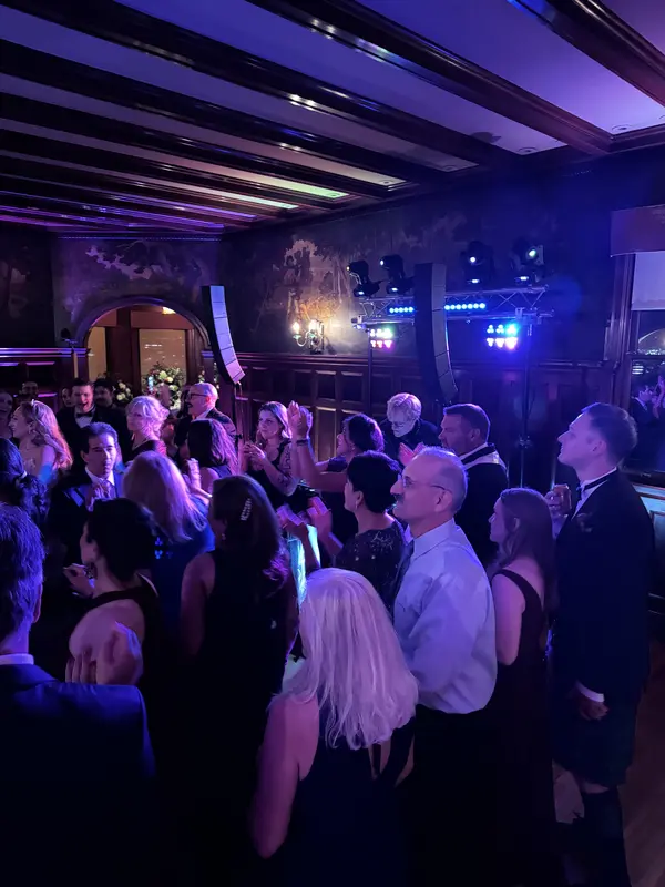 This includes services for smaller venues: Ceremony PA system. Wireless officiator mic. Prelude/seating music, processional(s), recessional, postlude music, cocktail music. Announcements, dinner music. Dance music and dance lighting. Emcee services