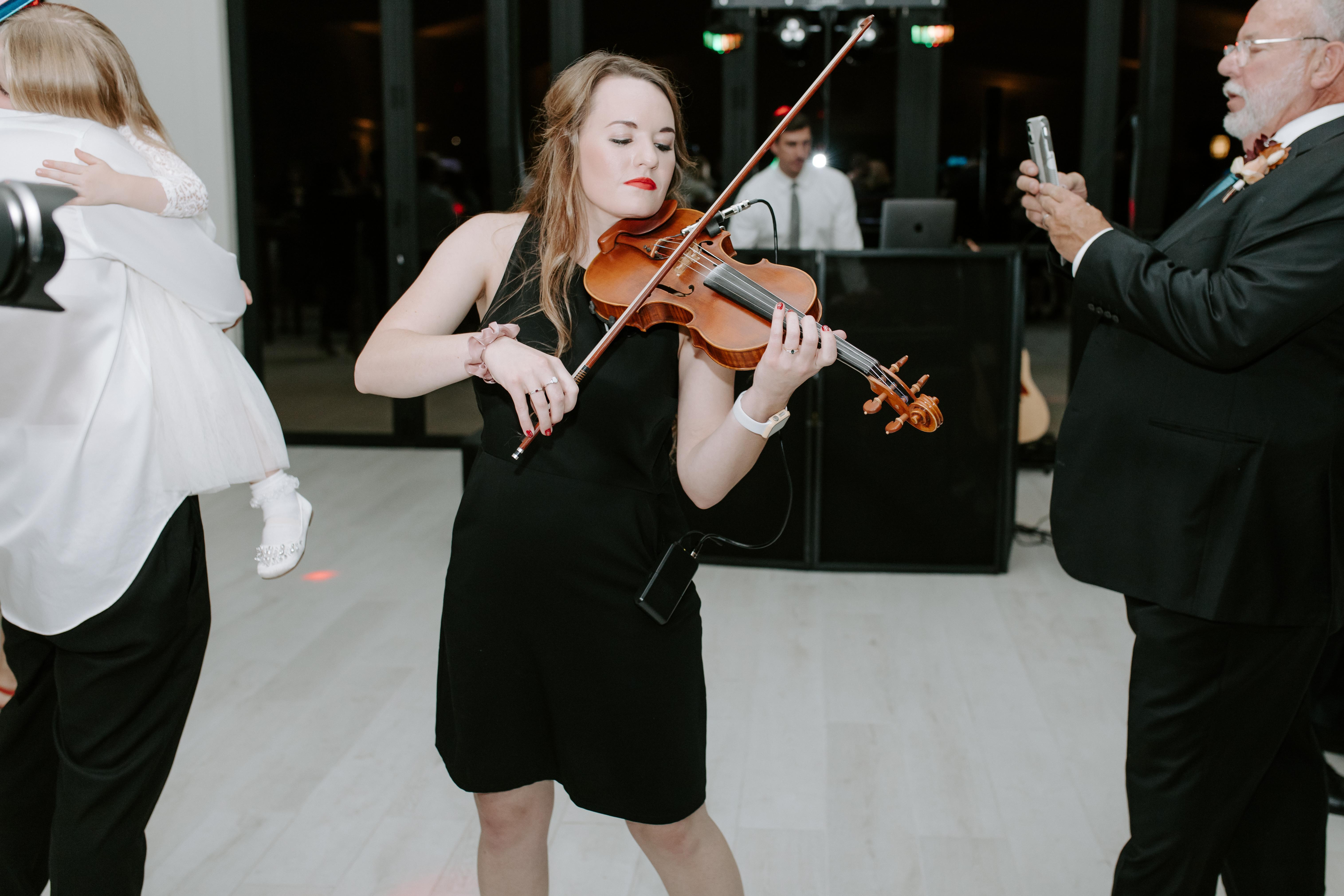 Before we talk about music, we're going to talk about how to keep your friends and family engaged in the evening, we're going to help you keep them from looking at their watches, we're going to help you make sure your wedding guests are happy they went to your wedding. After that, we'll have the obvious conversation about music. We also provide FUSION where our Live Musicians go to the middle of the dance floor and play along to our custom tracks helping to add both energy and elegance to your dance floor.