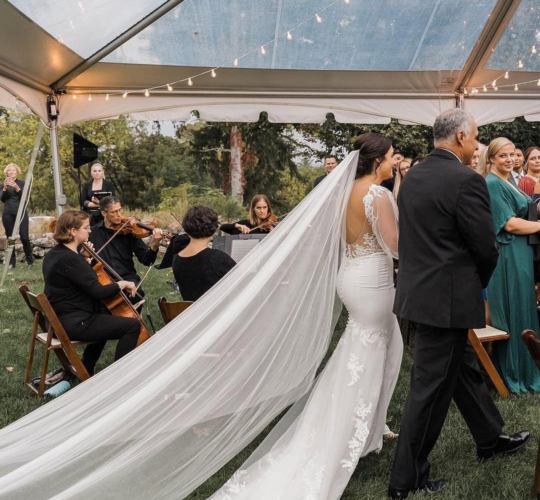 The Golden Scroll Soloists have been wowing Northeast audiences with a variety of styles for 20 years, melding familiar songs you love into an elegant string quartet experience. We helped popularize the "crossover string quartet", much like the Vitamin String Quartet, during the early days of classical crossover. Our style, now made mainstream by Bridgerton, predated the Netflix hit show by 15 years. We're ready to play for your ceremony, your cocktail hour, or maybe even your reception. Choose from a string quartet, string trio, string duo, or violin soloist. Let's start planning the soundtrack to your happily ever after!