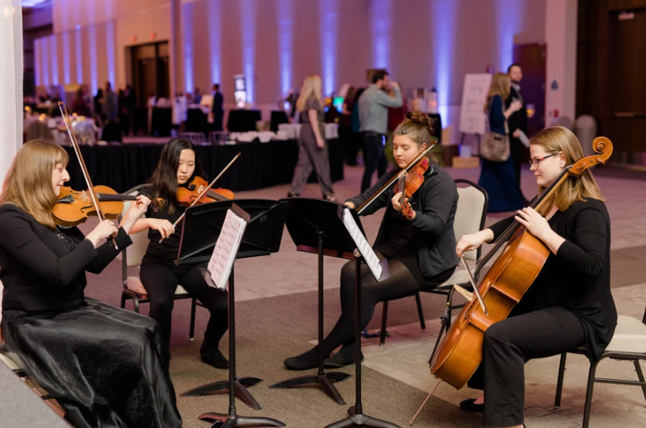 The Greater Grand Forks String Quartet is based in Grand Forks North Dakota and specializes in providing high quality background music and wedding ceremony music that is customized to suit the requests of clients. The group of two, three or four performers is made up of local musicians and members of the Greater Grand Forks Symphony Orchestra. Available as a quartet (violin, violin, viola and cello), trio (violin, viola and cello), or duo (violin and cello), the group provides suitable music for all types of indoor and outdoor functions, funeral music, and wedding ceremonies.