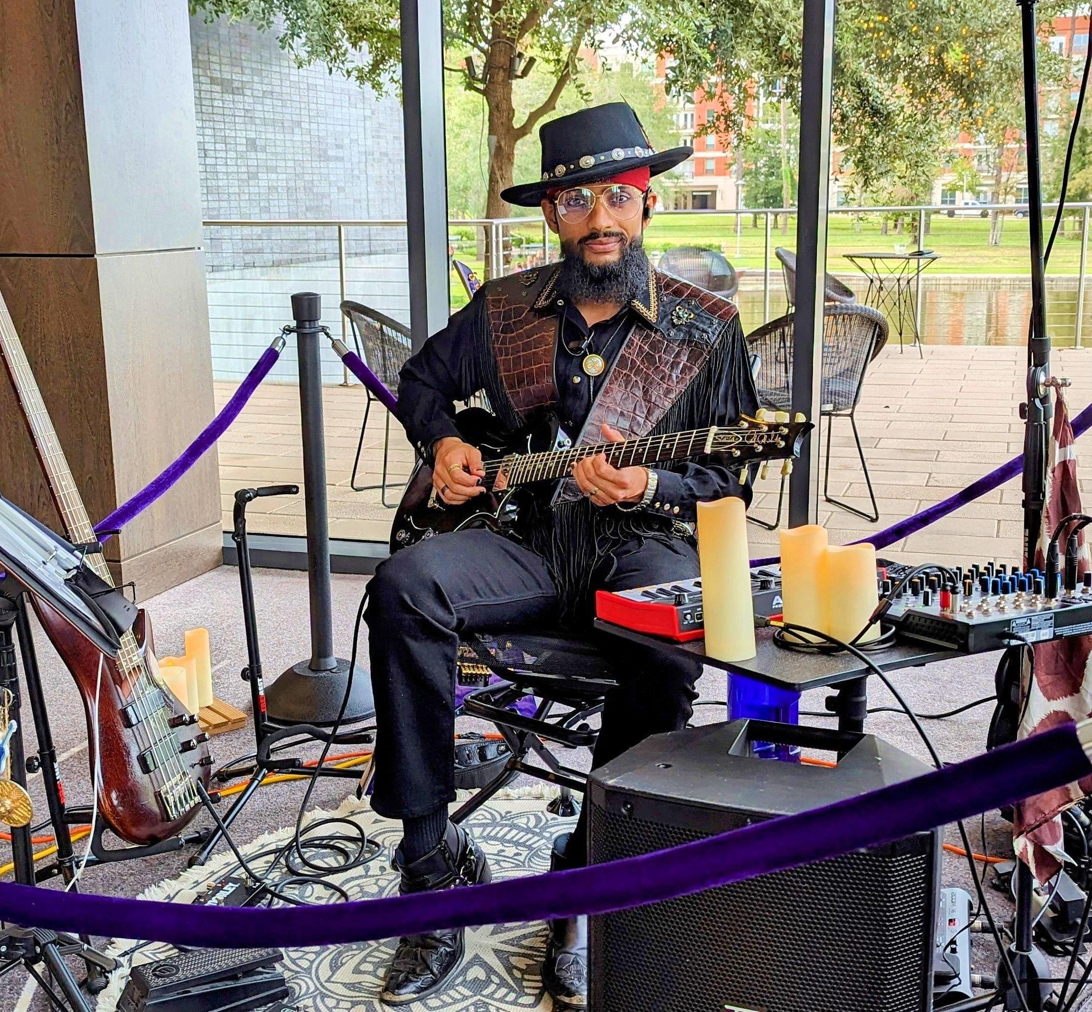 Hyphen Thazhath is a versatile Houston-based musician and Master of Ceremonies, offering captivating live music for your event. From intimate cocktail hours to high-energy performances, our solo artist seamlessly loops instruments, creating a unique and immersive musical experience. With an instrumental repertoire spanning various genres, we cater to diverse audiences, making music accessible to all. Whether you need exciting cocktail hour music, a full-fledged performance, or a dynamic host, Hyphen Thazhath delivers.
