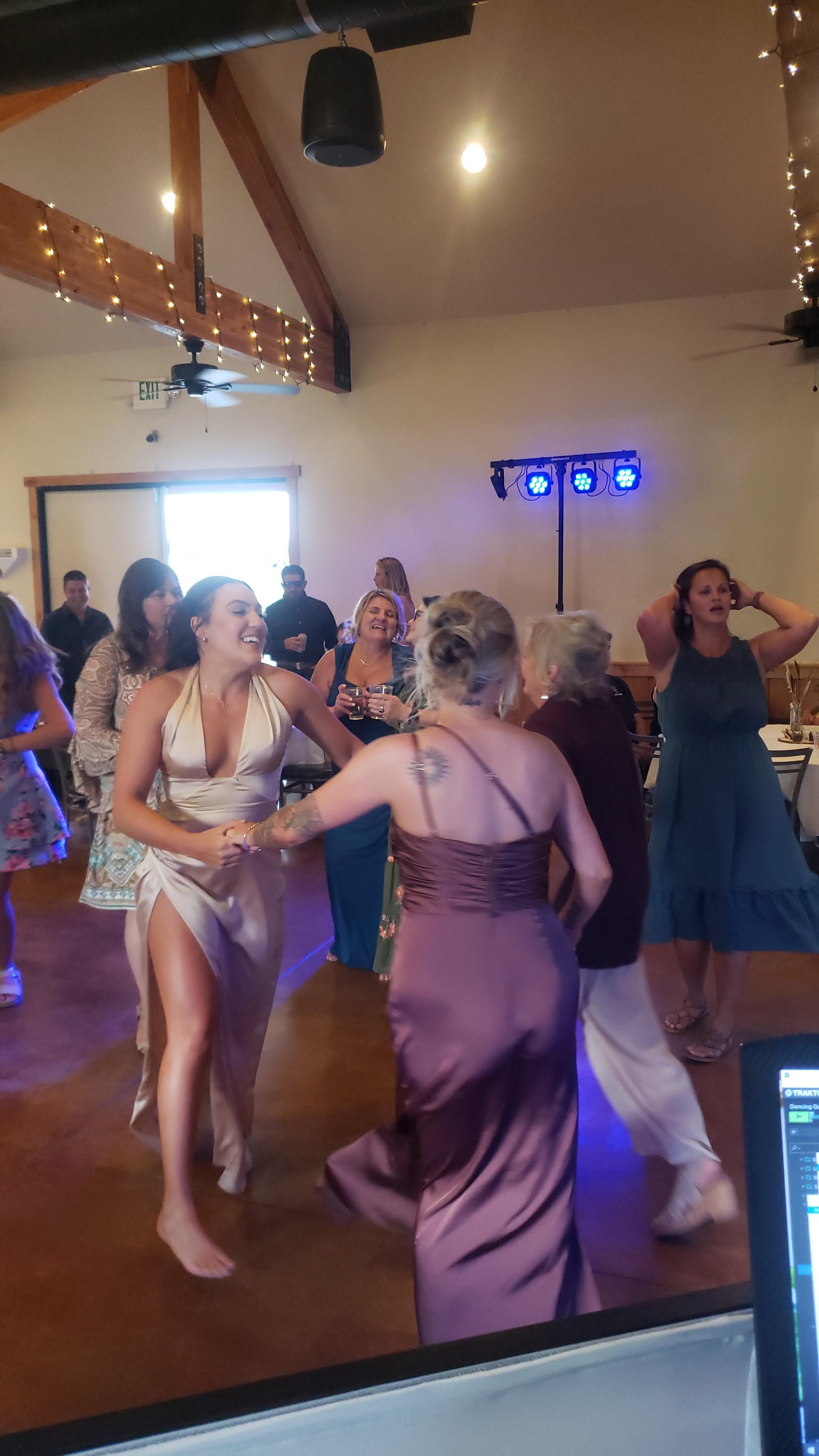 DJ who will MC, Reception Speakers, Ceremony Speakers, Dance floor lights, Reception Microphone, Ceremony Microphones - Wireless Lapel, Wireless Handheld, will mic up your Officiant and Musician, Will also mic up Bride & Groom for vows if desired, Boise travel 3 - 4 Hour Early setup, Unlimited Wedding DJ planning, Ability to play Any song you'd like at Your wedding