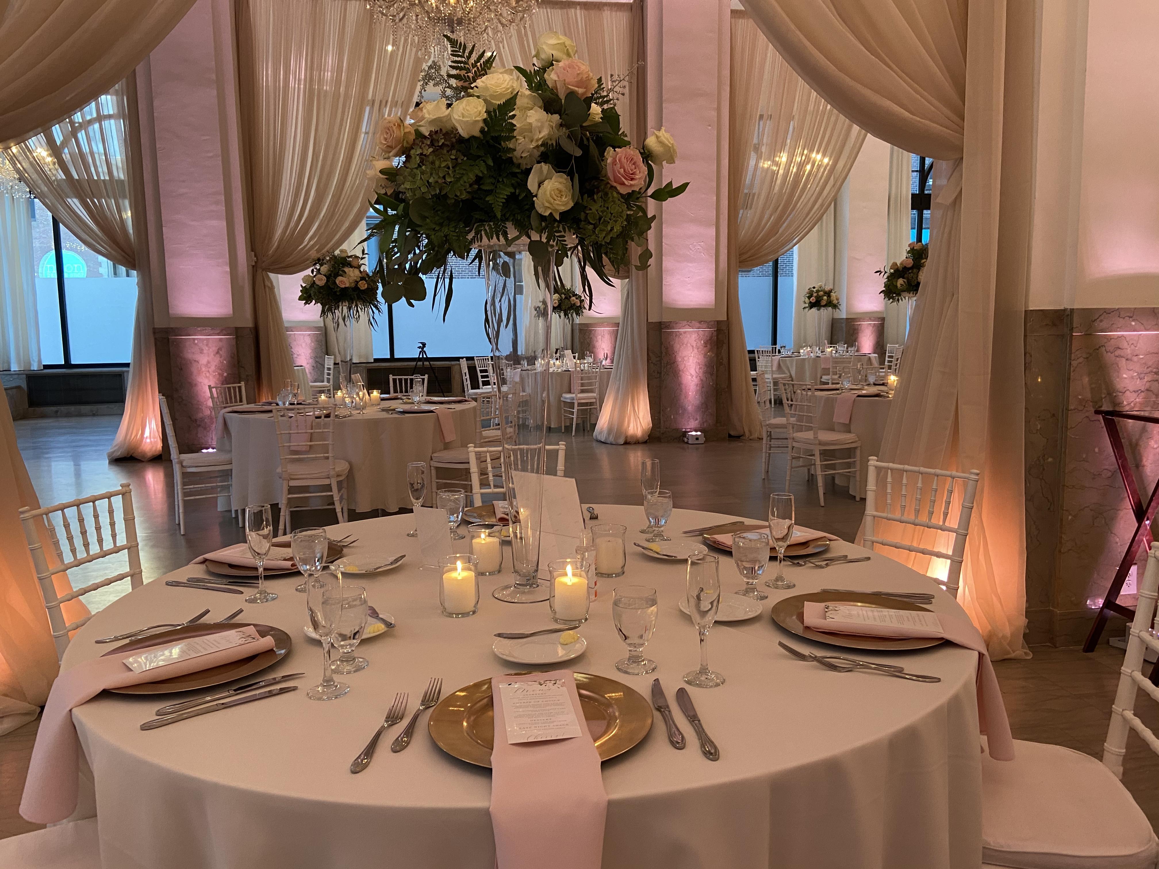 Additional services: Uplighting- For your reception, we will create a nice atmosphere that will showcase the space. This will illuminate the existing walls, drape, tent, and ceiling to give the room an exquisite glow. This service allows you to switch colors throughout the night. -Custom Monogram- Customize your names & wedding date with beautiful Gobo designs that can be projected onto the dance floor, tent, ceiling, or wall. Contact me today so we can start this amazing journey together!