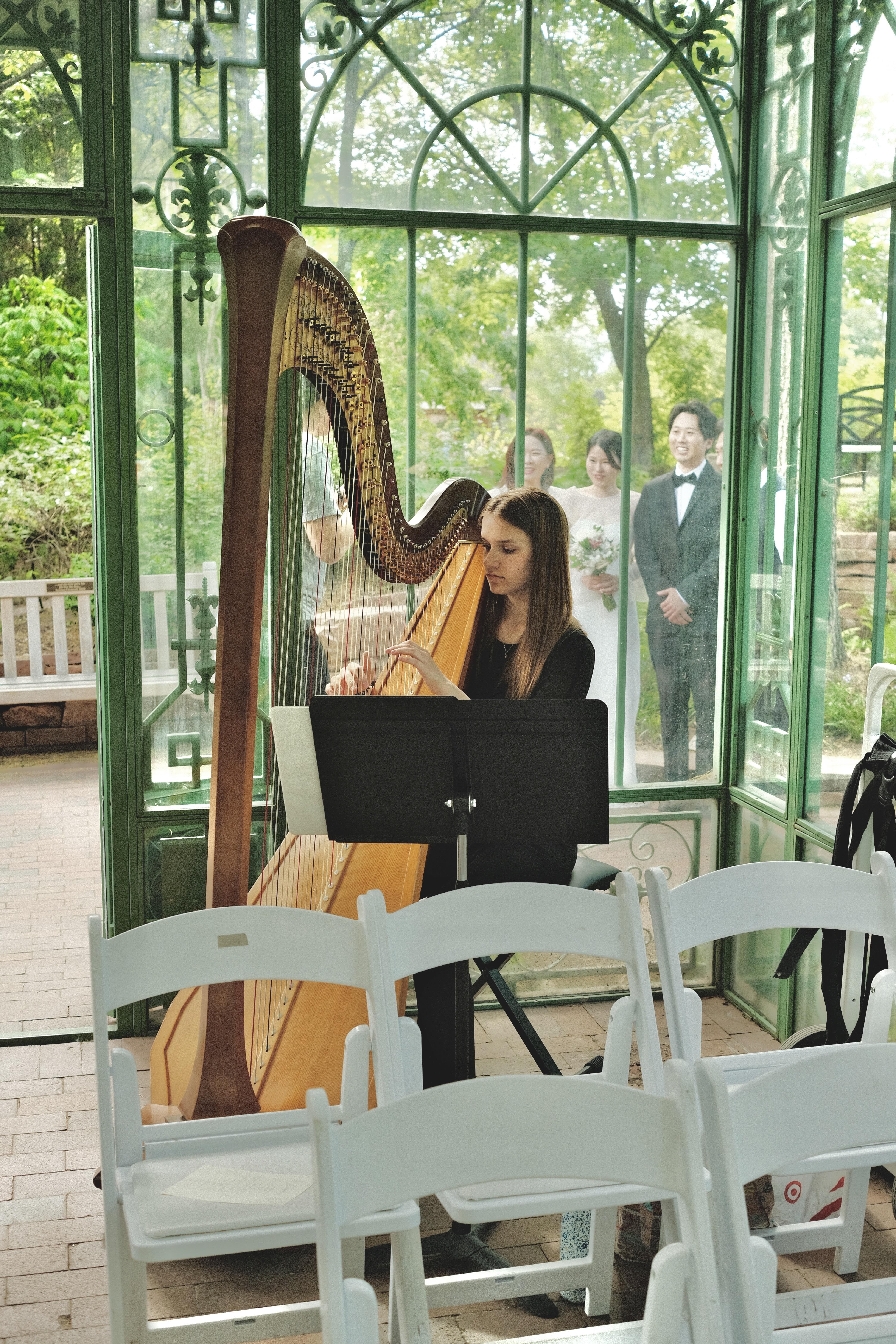 I spend as much time as possible with my clients in order to achieve their detailed vision for their wedding. All of my bookings include a free "preview" session, where I play samples of potential or already-selected wedding repertoire in order to help couples best suit their music to their ceremony. The selections I have played at weddings range from ceremony favorites, like Canon in D, to harp arrangements of gospel, EDM, and Disney songs that mean something special to the happy couple. I look forward to connecting with you and creating a meaningful musical experience for your wedding!