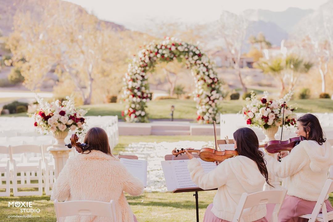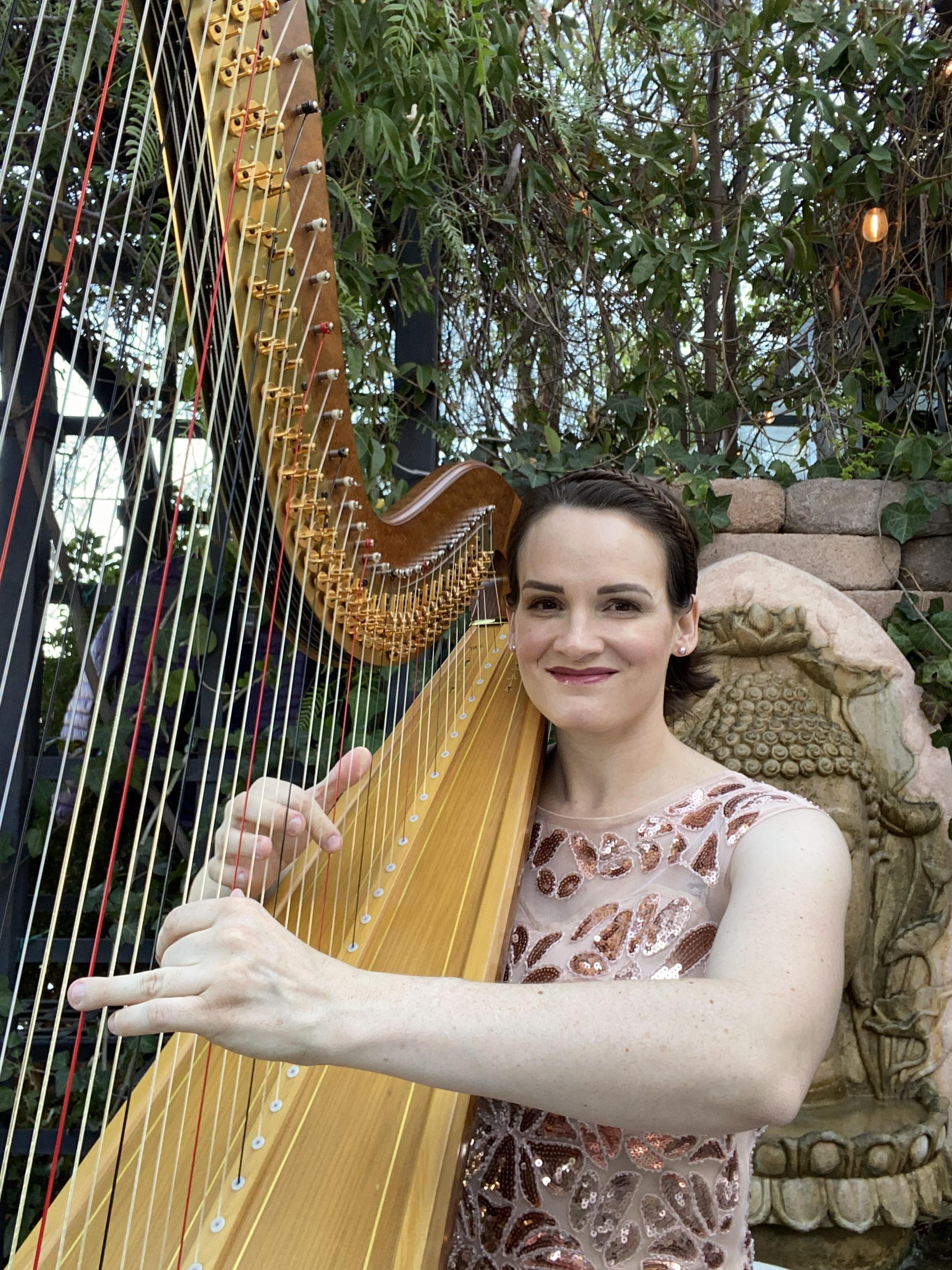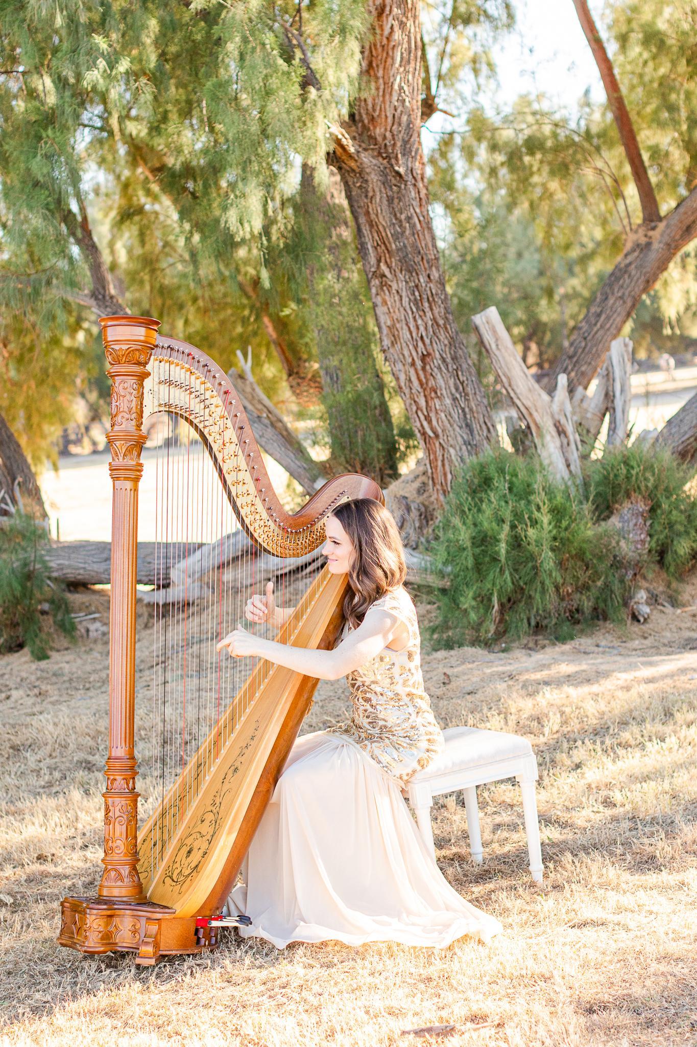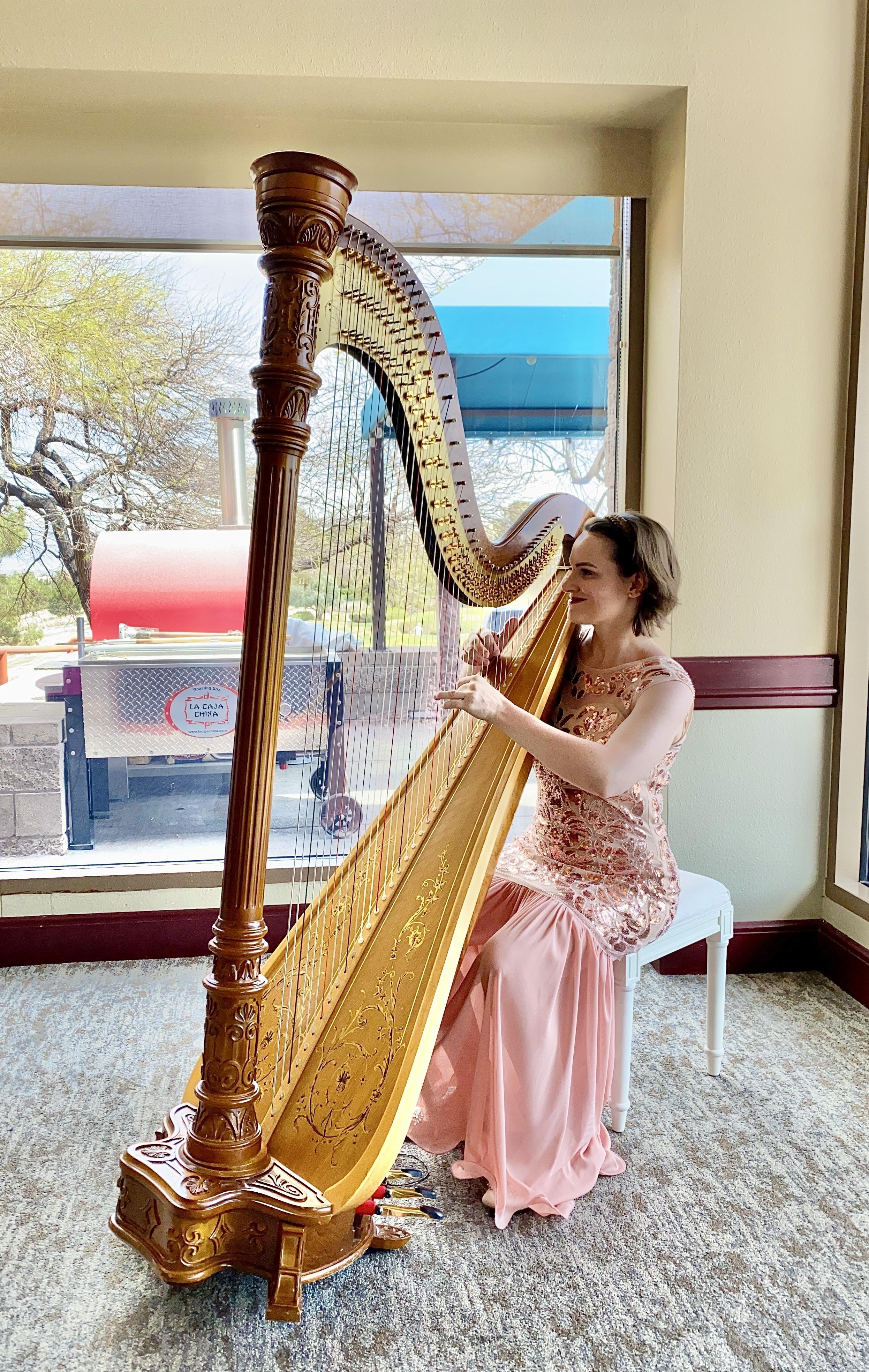 Hi! I’m Kristie, and I play live harp music for wedding ceremonies in Las Vegas. I love playing for weddings because of the deep emotional connection I feel with couples and their families. My music helps bring families together, which is what it’s all about.