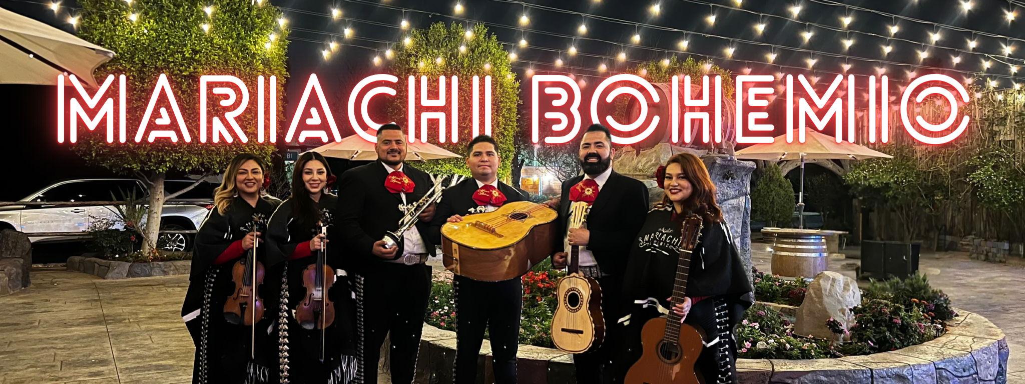 Mariachi Bohemio – Premium 6-Musician Experience For the ultimate full mariachi sound, our 6-piece ensemble delivers a powerful and dynamic performance, perfect for larger events and grand celebrations. With rich harmonies, vibrant instrumentation, and unmatched energy, we create an unforgettable atmosphere for your wedding, party, or special occasion. Elevate your event with our premier mariachi ensemble—book today
