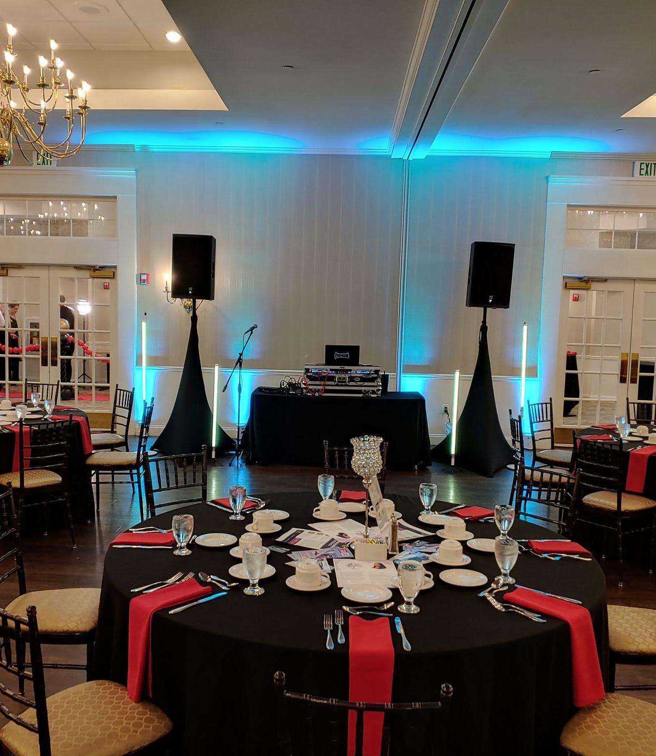 This package includes a DJ / MC for 6 hours. We will provide sound, DJ booth lighting & dance floor lighting.