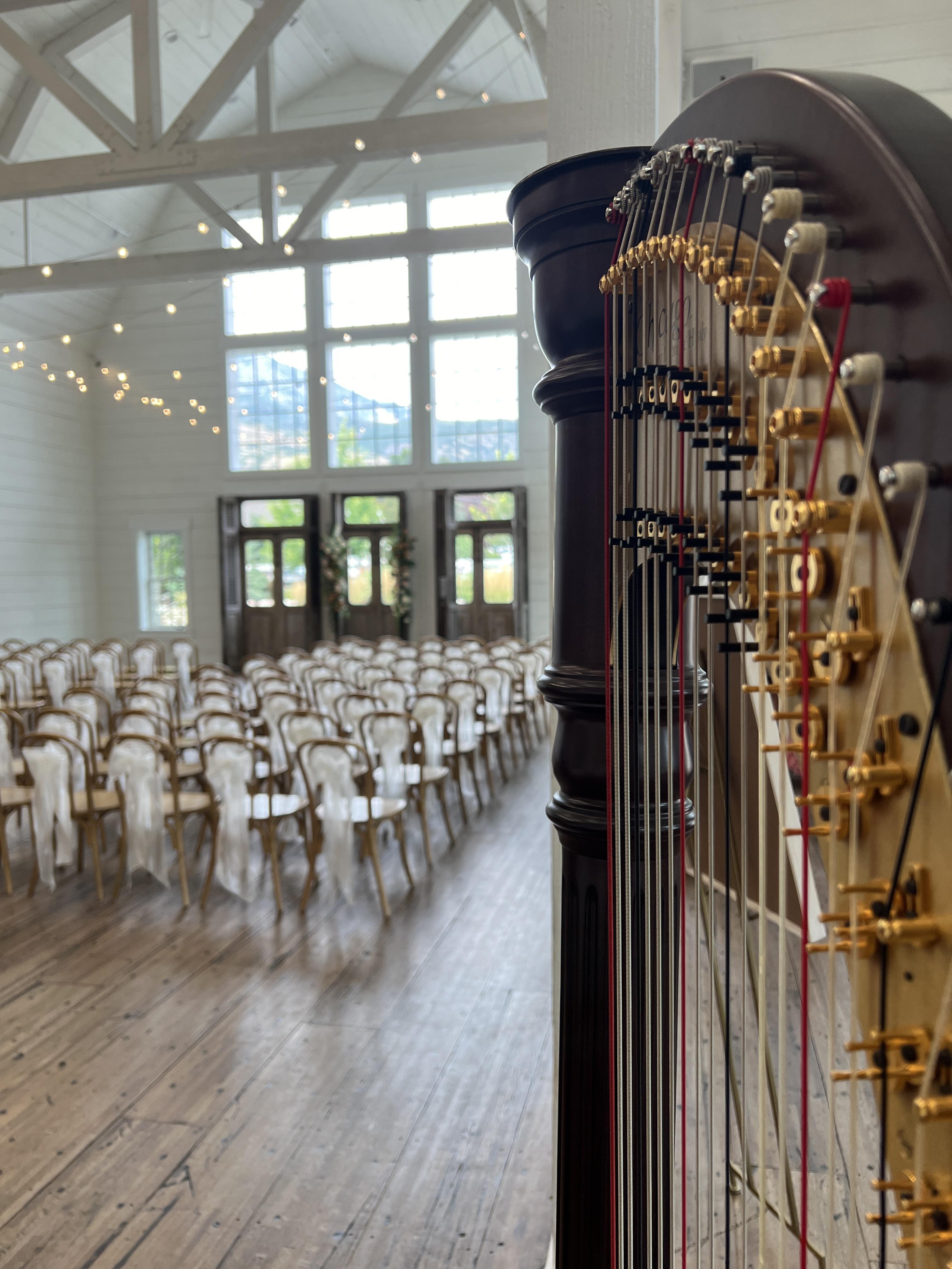 Oh my goodness I cannot say enough wonderful things about my experience with having Merinda play our wedding! She was so fast to respond to me, and had such amazing communication on timing, pricing, and the music that I wanted! She had such a vast selection, and even was willing to learn new song just for us. We got married up in the Uinta mountains, which was a hard long location to get to. She showed up early and was so prepared. I tell you she was a trooper, we had crazy rain and hail and she was just happy and pleasant and playing beautifully still! Carting her harp all around the camp and just was absolutely amazing. She is so talented! I cannot recommend her enough, do yourself a favor and have her play your event! Thank you Merinda!