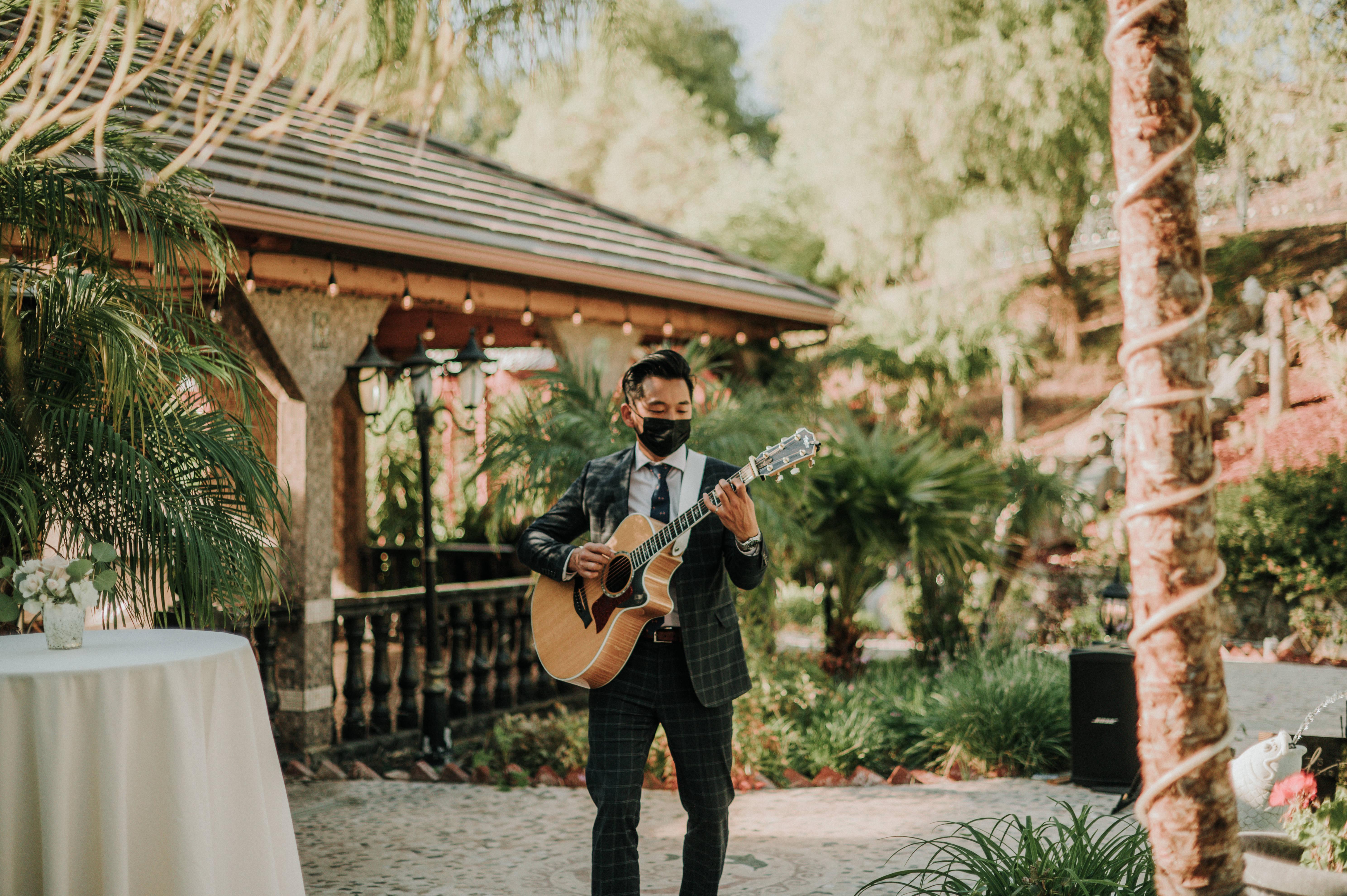 For your ceremony, I've crafted beautiful, intimate, instrumental versions of popular songs that's guaranteed to make you and your guests tear up. For cocktail hour, I kick it up a notch with high energy instrumental covers where I blend in percussive elements like hitting the guitar like a drum. I'll be walking around wirelessly, dancing and jamming out with your guests. Cocktail hour is usually the most boring part of a wedding. Let's change that! I guarantee this will be the most lit cocktail hour your guests will ever experience.