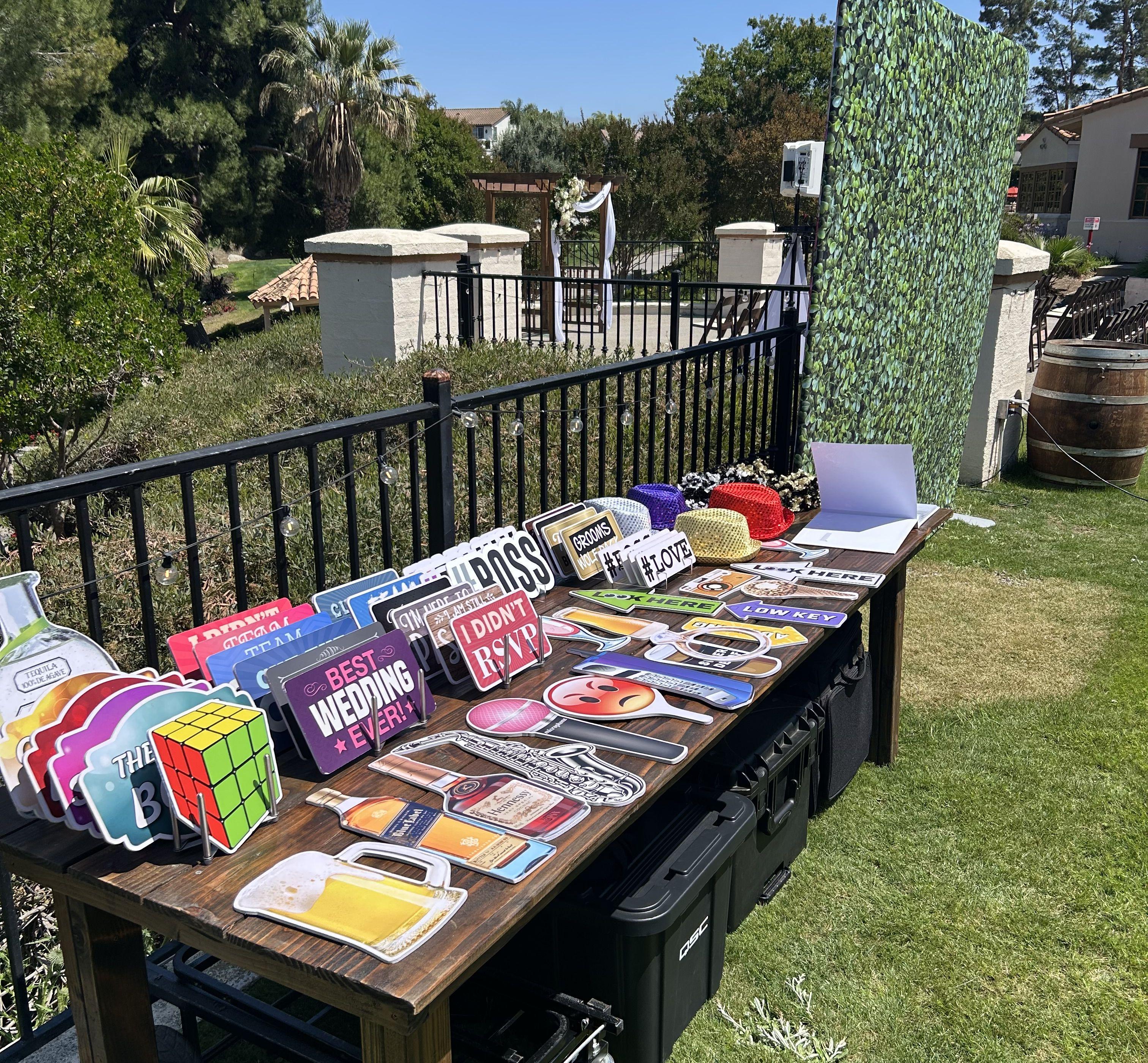 Our photo booth package comes with a dedicated operator to ensure a seamless experience. Guests can enjoy unlimited 2x6 prints, customized from a wide selection of templates. An extra copy of each print goes into a photo album, where they can leave a personalized message—yours to take home at the end of the night. You’ll also receive digital downloads of all photos. To make things even more fun, we provide a variety of props, signs, and backdrops, with up to 4 hours of service included.