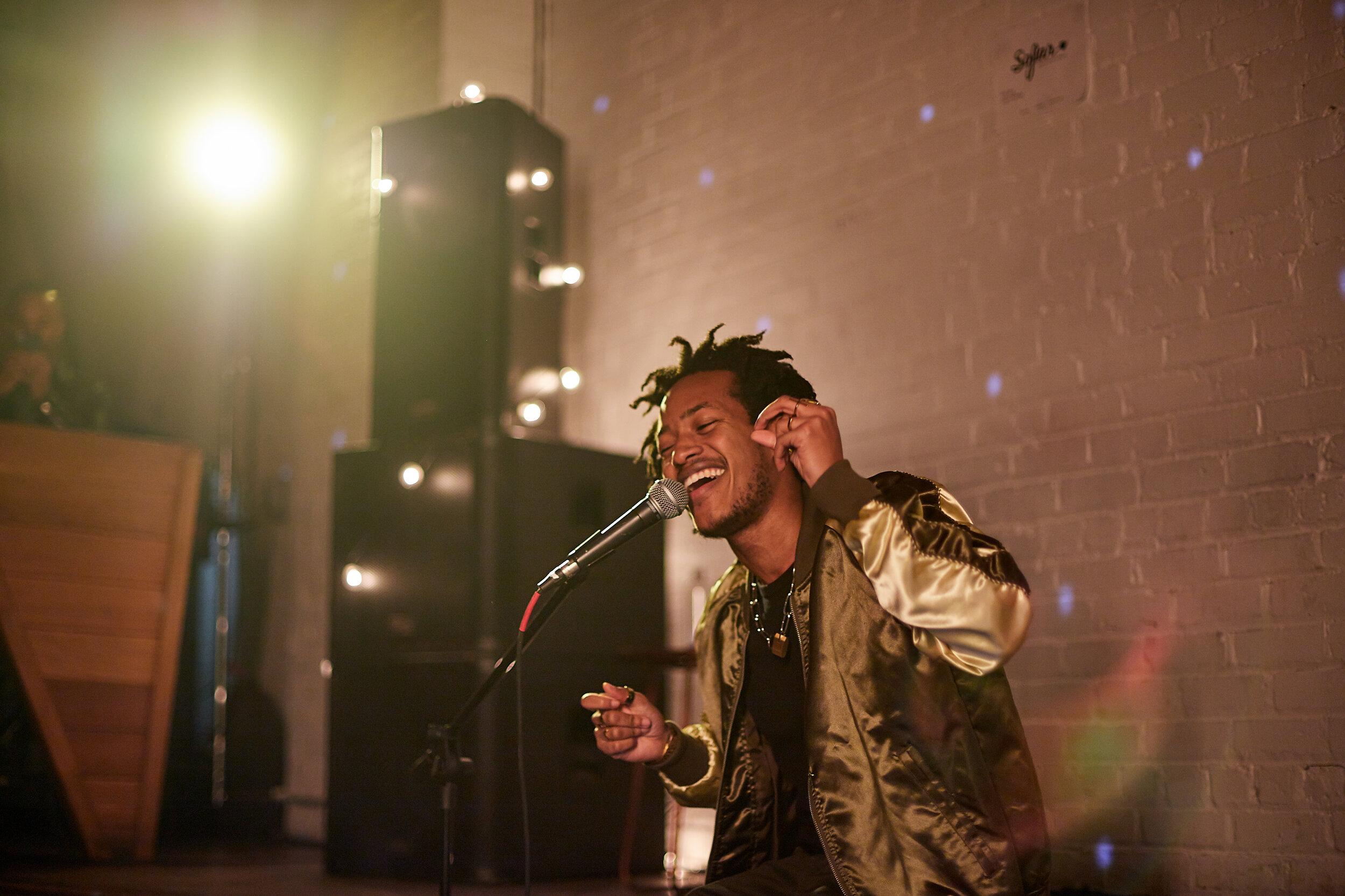 IS A POET WHO USES HIS PASSION FOR MUSIC AND STORYTELLING TO DOCUMENT THE HUMAN EXPERIENCE. THIS "FUTURE POET LAUREATE" IS THE PRODUCT OF JAMES BALDWIN AND KANYE WEST. LANGSTON HUGHES AND LUPE FIASCO. MAYA ANGELOU AND MOS DEF. HIS SOULFUL AND JAZZY PRODUCTION PAIRED WITH HIS POETIC STORYTELLING ABILITY HAS ALLOWED HIM TO PERFORM AT THE APOLLO THEATER, BE HIGHLIGHTED IN THE NEW YORK TIMES AND BE A FEATURED PERFORMER/SPEAKER AT THE UNITED NATIONS.