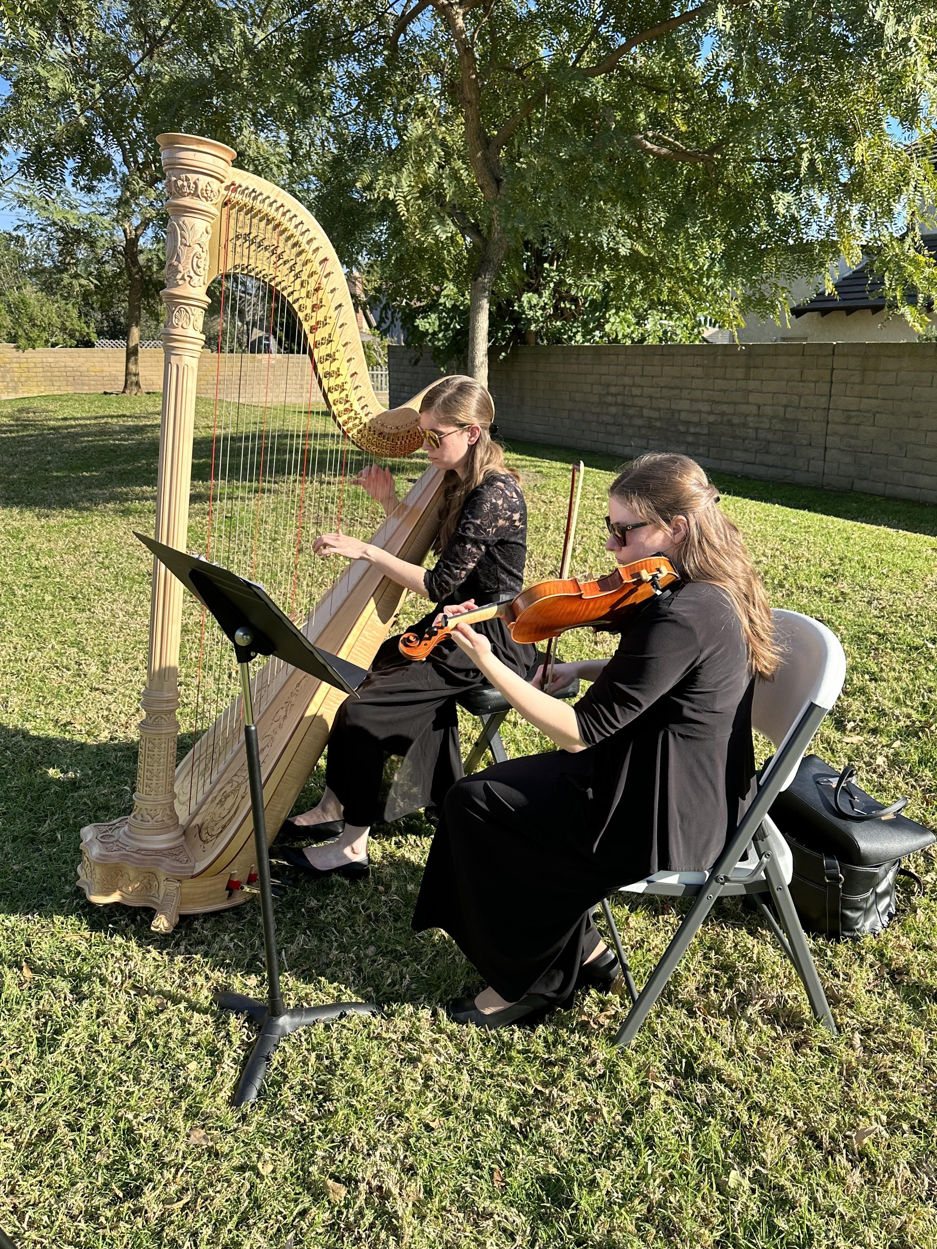 Performing breathtaking melodies in the Temecula California area, and beyond, Stephanie - Harpist is a talented musician for anniversaries, weddings, and engagements. This performer specializes in harp solos and harp and violin duos. With Stephanie Iorga’s great ear and amiable assistance, you can celebrate with quality music entertainment. Thanks to her extensive knowledge and flexibility, she is able to learn your favorite song for your walk down the aisle. You and your partner may also book a sample performance if needed.