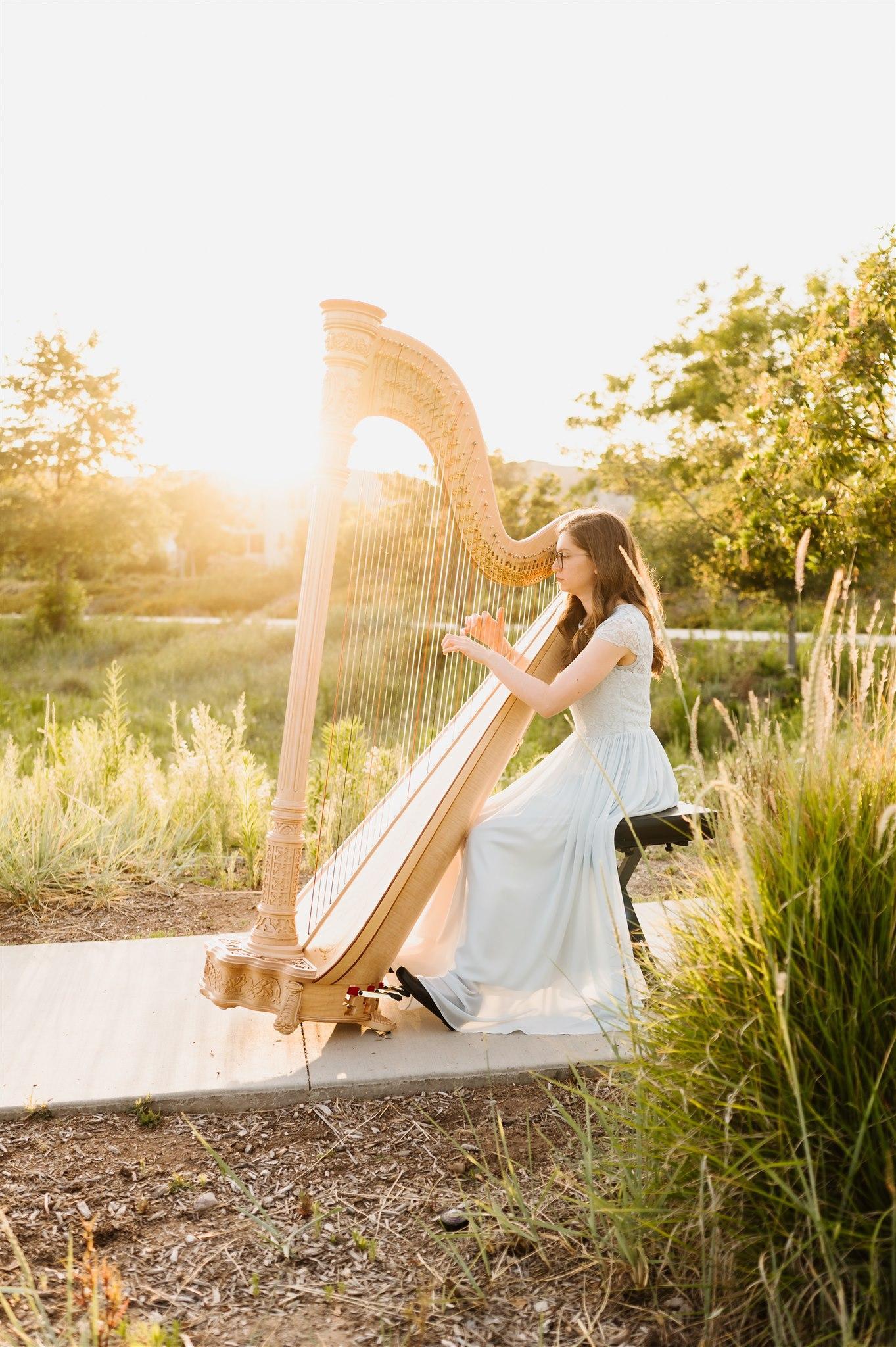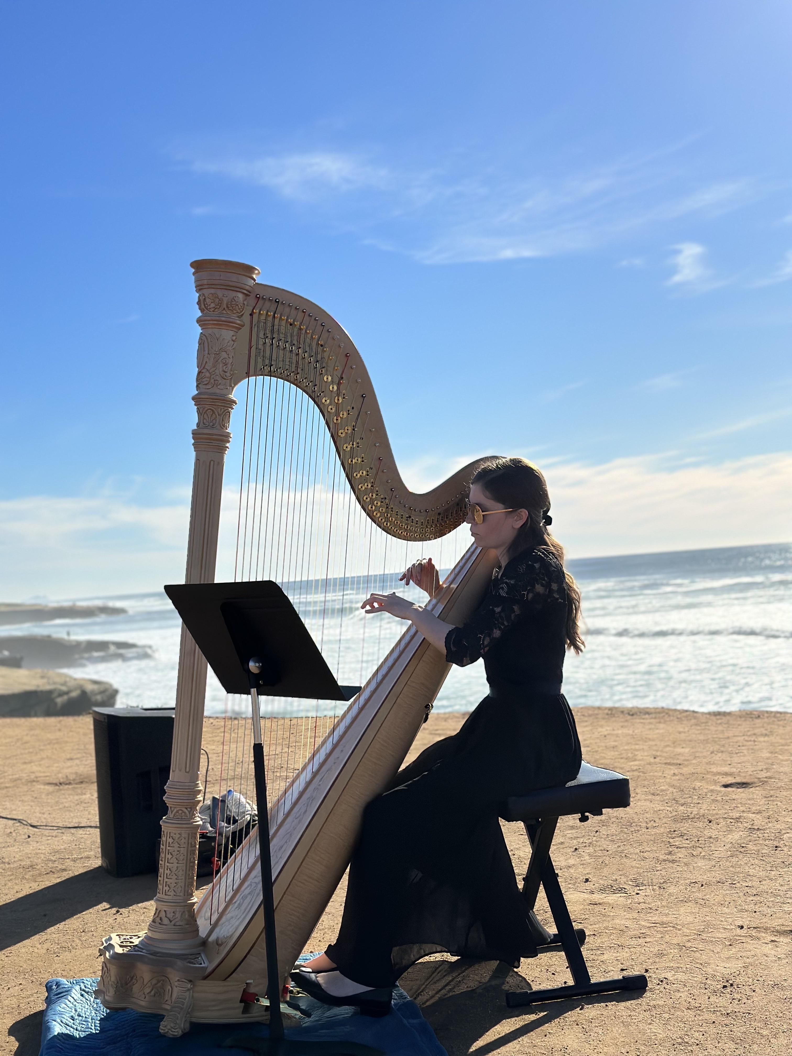 Stephanie began her musical journey when she started learning the piano at age 5. Three years later, she started taking harp lessons after her dad suggested she learn the instrument. In high school, her teacher encouraged her to think of becoming a professional harpist. Stephanie received her Bachelor and Master degrees in Harp Performance at the Bob Cole Conservatory of Music at CSULB. Now as a professional harpist, she spends her time teaching harp and piano at her private studio, and playing for weddings, funerals, and other private events, and in orchestras and bands throughout SoCal.