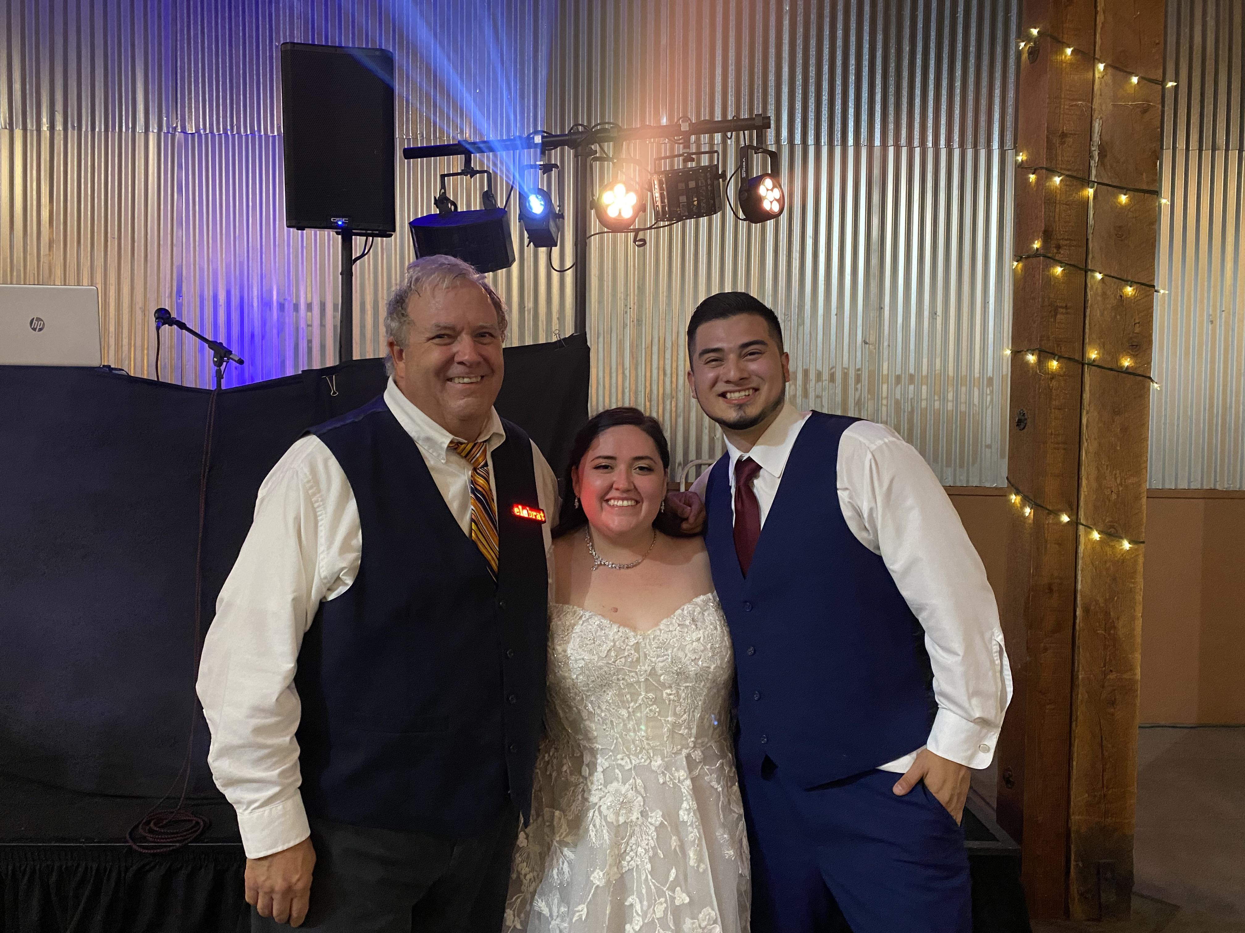 We just wanna say thank you so much for helping us play music for our wedding. Our guests love the music and dancing to the Spanish songs. The lighting was great and the glow stick exit was wonderful. We thank Daryl for helping us with the rehearsal, with music, glow sticks, and communicating with us and the guests and the wedding party respectfully. And for answering all of our questions and concerns.