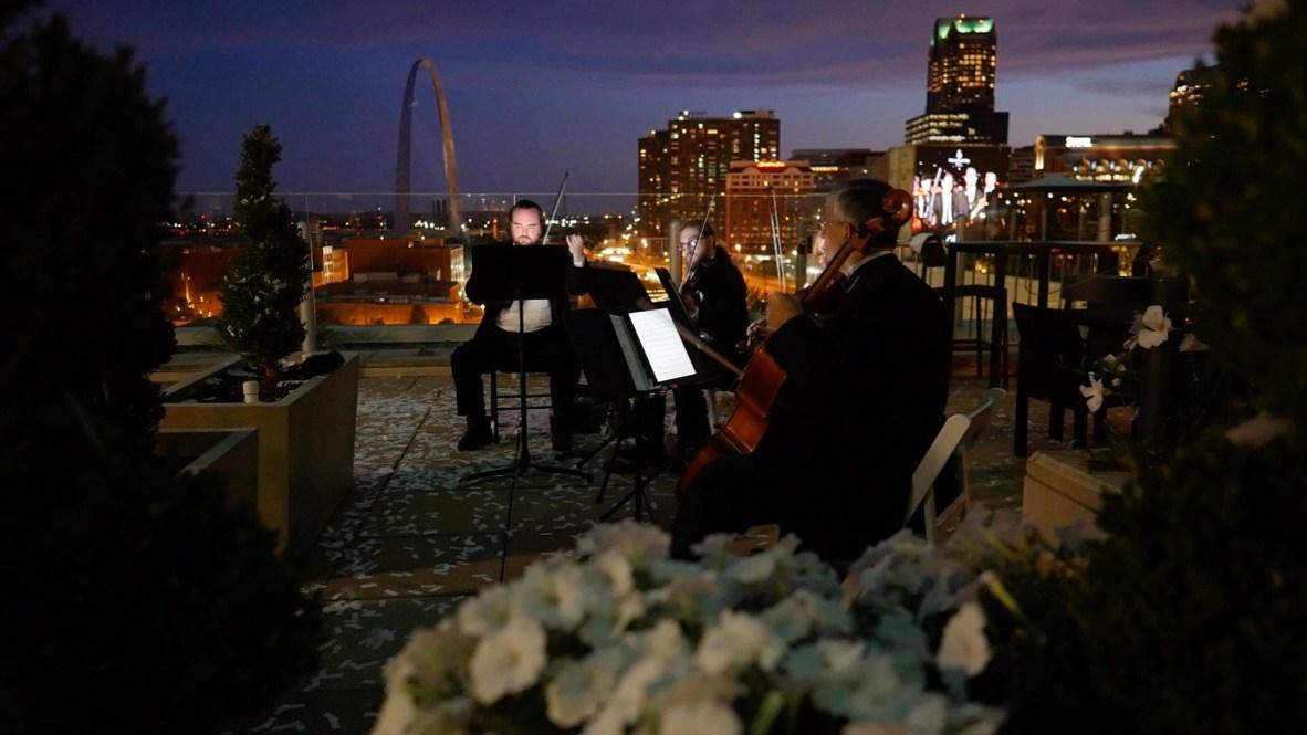 The most popular wedding ceremony ensemble in St. Louis! This package includes an hour with as much music from our string quartet as you like including preludes, processionals, bridal march, interludes, recessional and postlude music. This quartet covers the greatest variety of any around St. Louis playing the classical hits like Canon in D, Trumpet Tune, Ave Maria and Flower Duet as well as Top 40, jazz, country and big screen favorites.