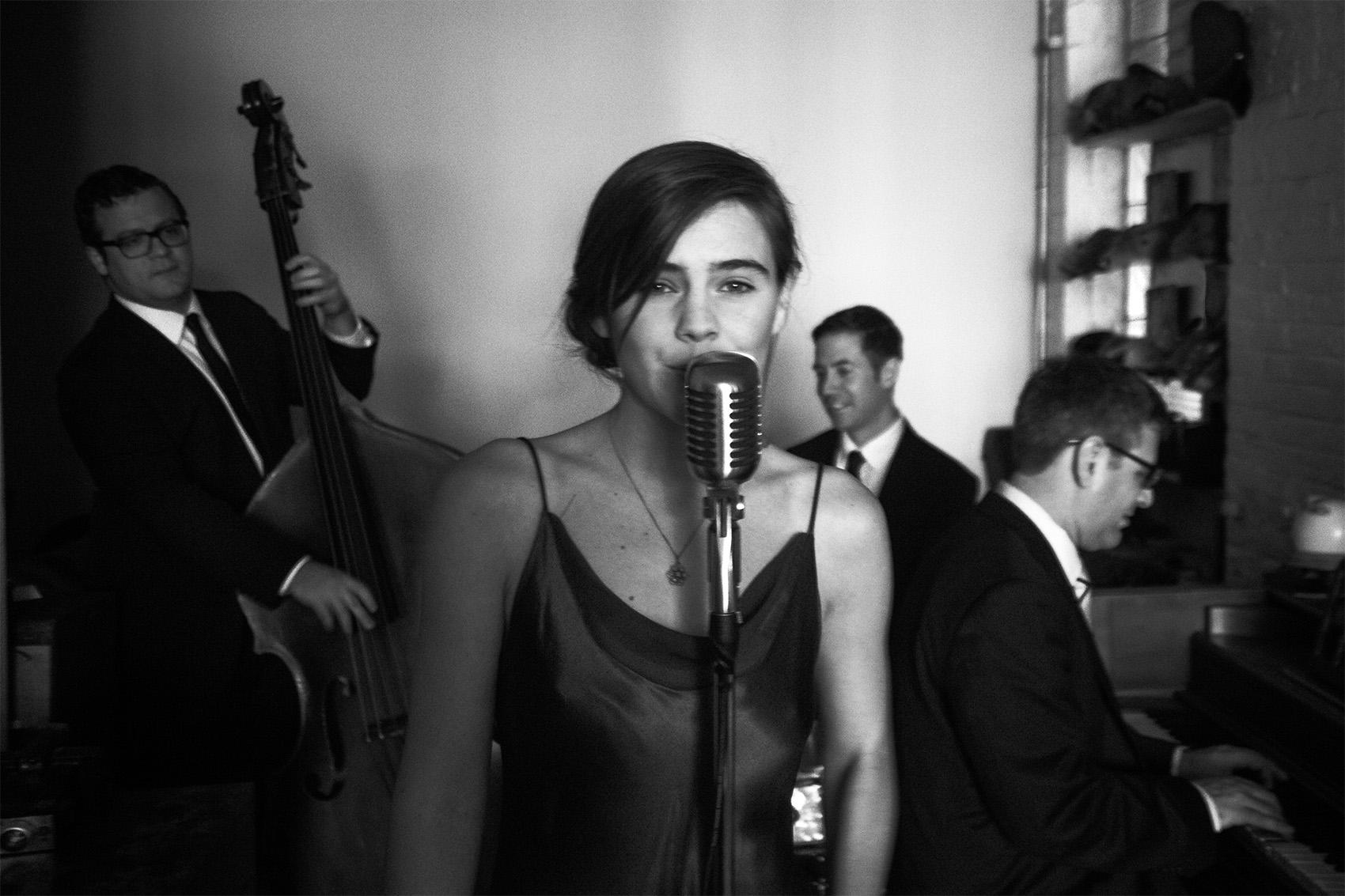 The Smoke Rings evoke the elegance and charm of the Swing Era. Anchored by the unique vocals of Sarah King, the group specializes in songs from The Great American Song Book. The rhythm section is comprised of Alex Levin/Stefan Vasnier (piano), Greg Rugierro (guitar), Scott Ritchie (bass), and Ben Cliness (drums). Since its inception in 2010, The Smoke Rings have played to huge crowds at festivals in El Paso and Pennsylvania, and in more intimate settings at weddings and private parties in New York City and across the country.